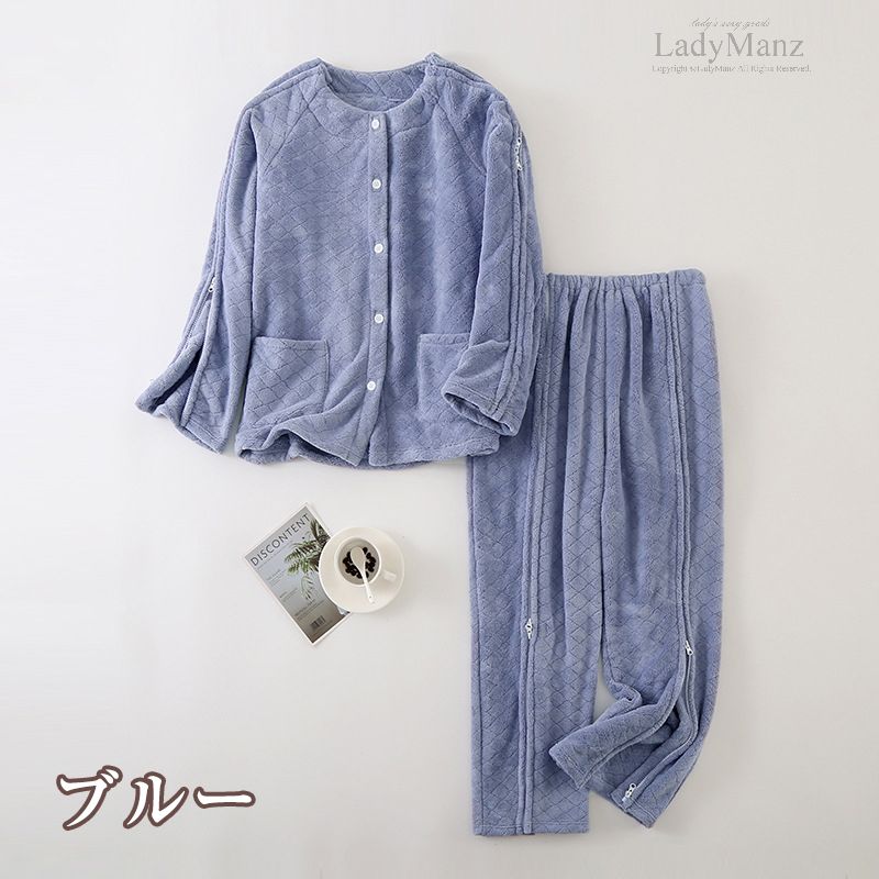 介護用パジャマ 寝たきり パジャマセッ 今様色(レディース) 東雲色(レディース) グリーン(レディース) 茶色(メンズ) ブルー(メンズ) M L XL XXL