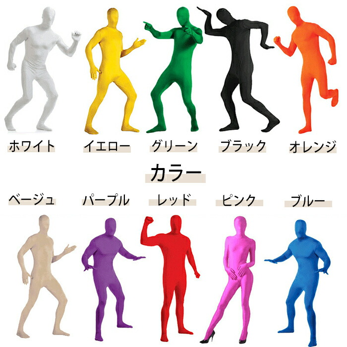 全身タイツ コスプレ 豊富な10色 レ コスプレ 変装 仮装 全身タイツ 豊富な品揃え ホワイト イエロー レッド パープル グリーン ブラック オレンジ ピンク ブルー ベージュ M L XL XXL