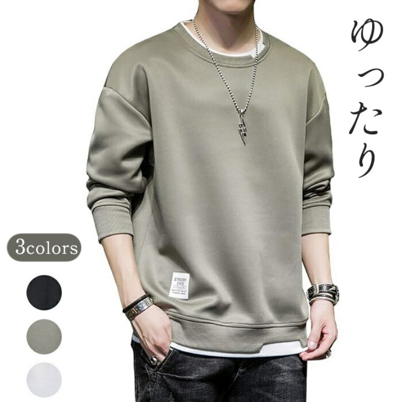 トレーナー メンズ パーカー Tシャツ 長袖 春秋服 ゆったり シルエット プルオーバー トップス カジュアル おしゃれ 大きいサイズ 秋服 かっこいい スウェット ストリート 人気 冬 春 オー 秋