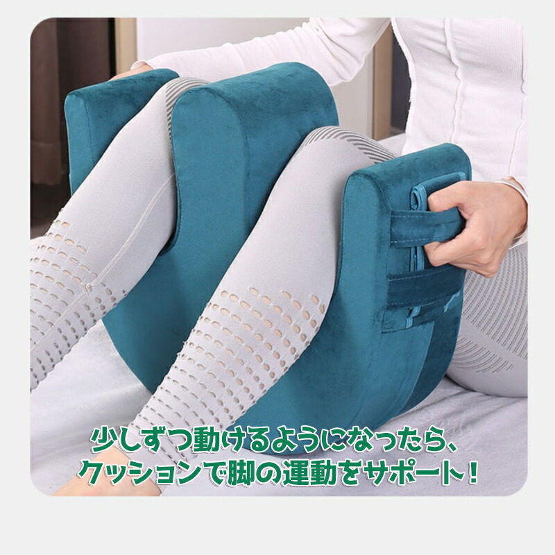 少しずつ動けるようになったら、クッションで脚の運動をサポート!自分のペースでリハビリが続けられるので、励みになるはず。小さな一歩が、大きな回復への第一歩に