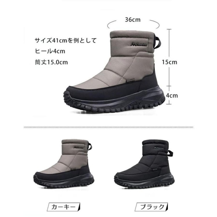 裏起毛 スノーブーツ メンズ 北海道 靴 新作 カーキー ブラック 40(25cm) 41(25.5cm) 42(26cm) 43 (26.5cm) 44 (27cm) 45 (27.5cm) 46 (28cm)