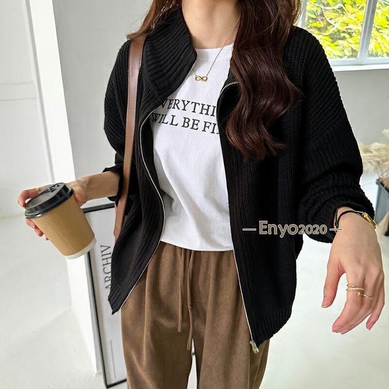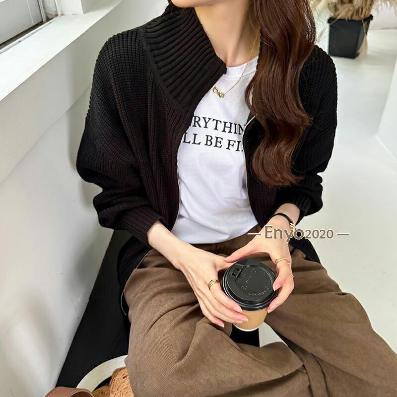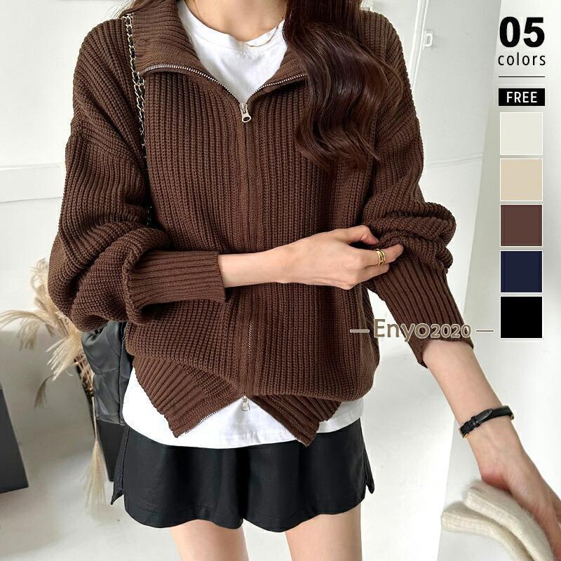 ニット ダブルジップ カーディガン レ トップス カーディガン ボレロ 早い者勝ち ブラック ベージュ アイボリー ネイビー ブラウン
