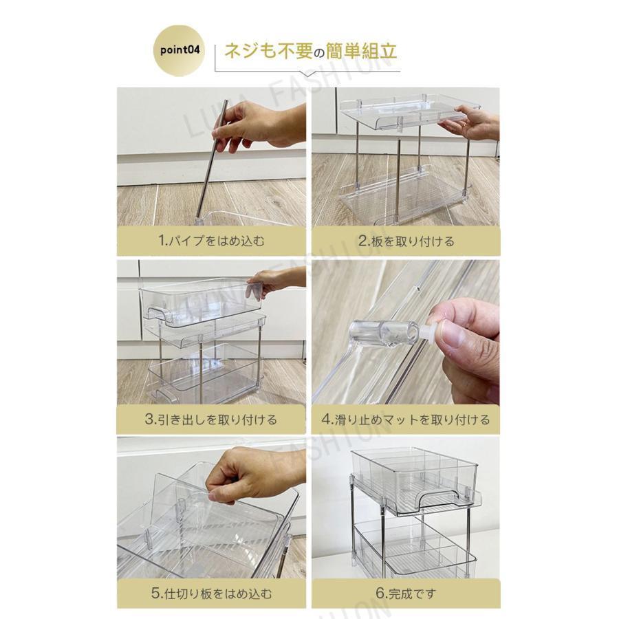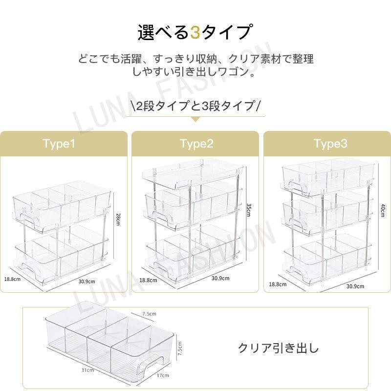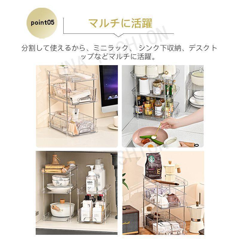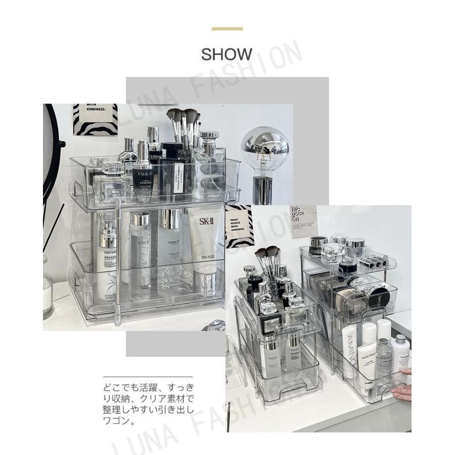 収納ラック クリア 透明ラック 収納ケース 2段 3段 引き出し おしゃれ かわいい 引出し式 収納ボックス 透明 スケルトン 収納 小物収納 片付け リビング 分割