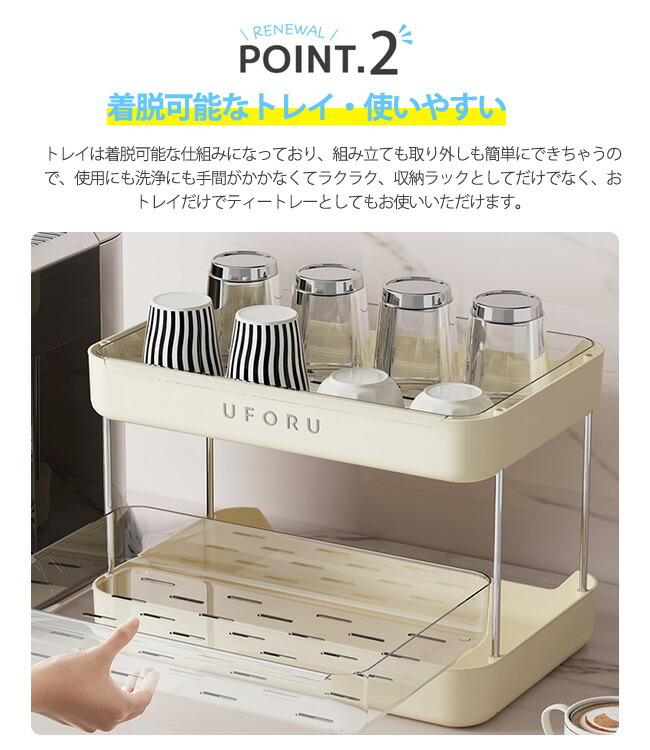コップ 収納 カップラック 食器 水切 キッチン用品 食器 調理器具 続々登場 オフホワイト ブラック 2段 3段