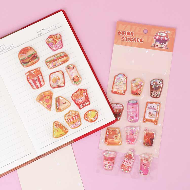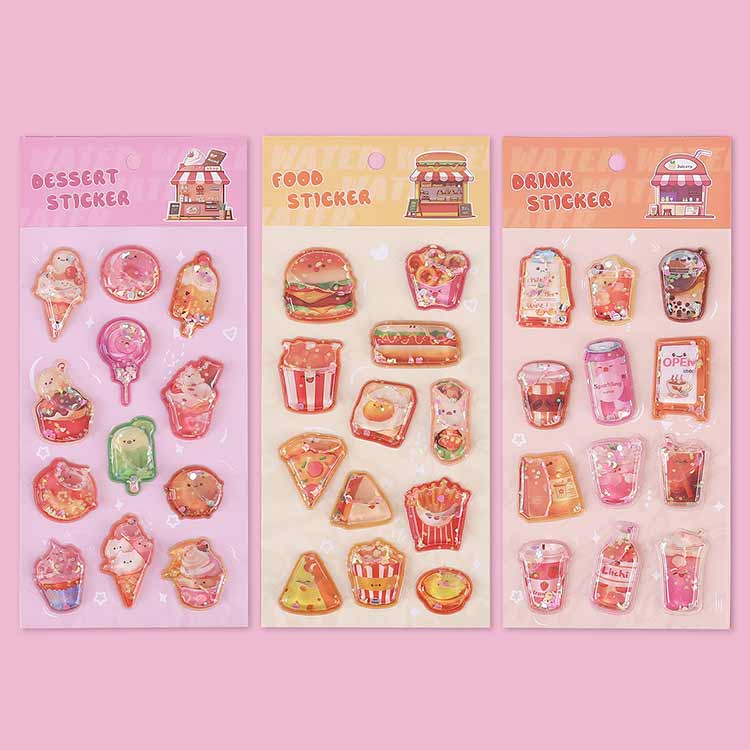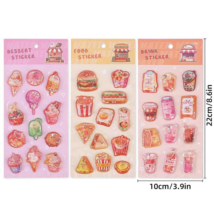 飲み物 3枚入り シャカシャカシール サンドイッチ シール帳 水入りシール ウォーターインシール 日記 食べ物 女の子 大人 デコシール ぷくぷくシール 3D 立体 立体シール 3Dシール ぷ ケーキ