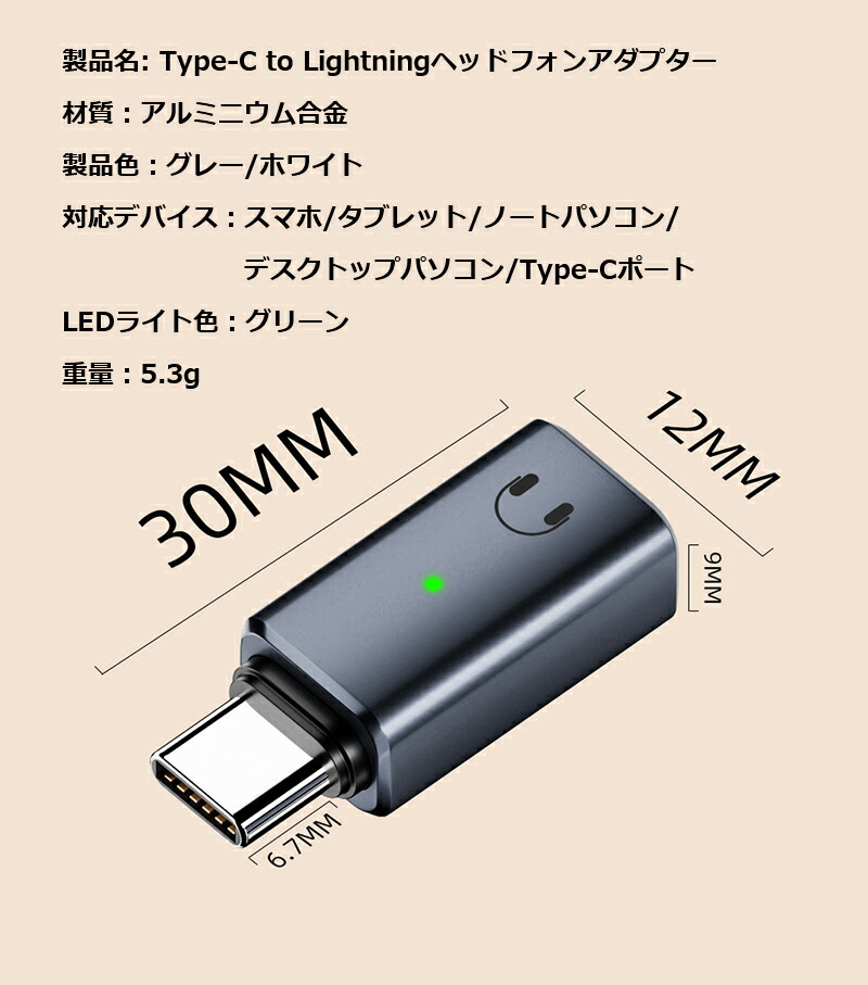 Type-C to Lightning スマートフォン タブレット用ケーブル 変換アダプター 新作 グレー ホワイト