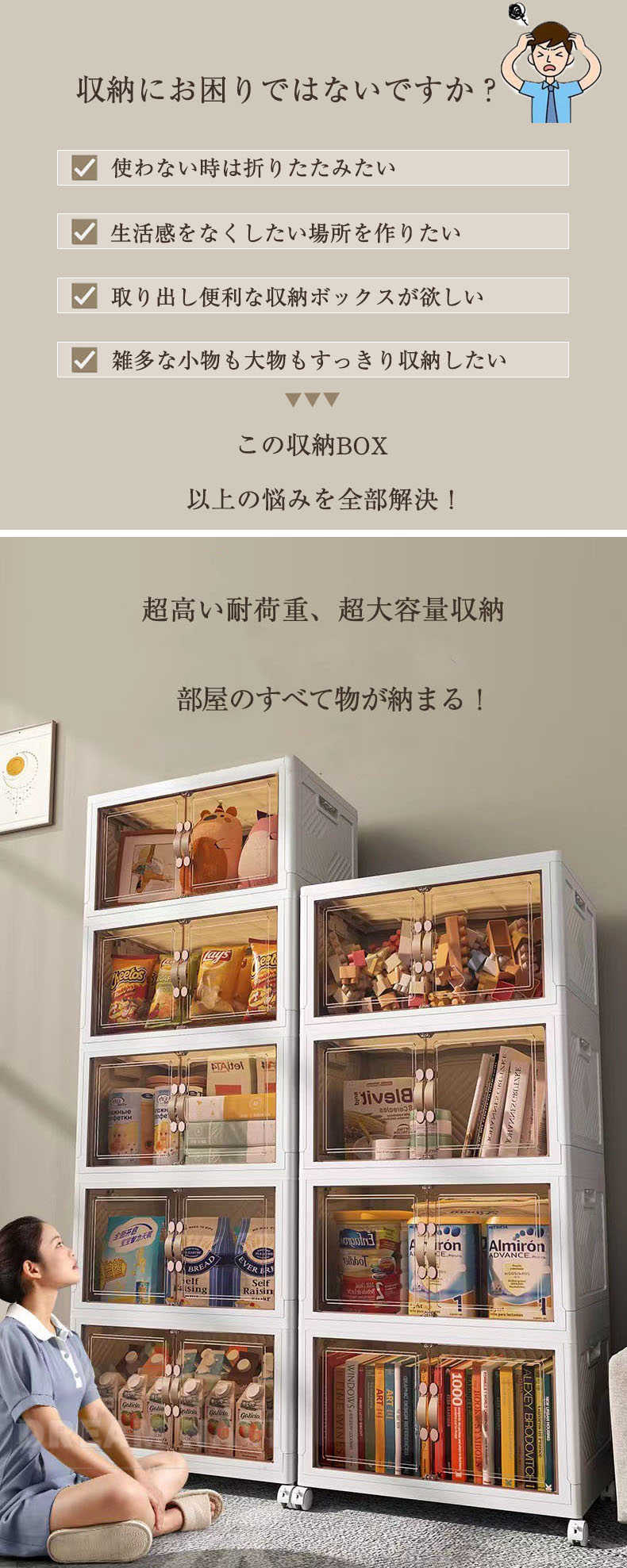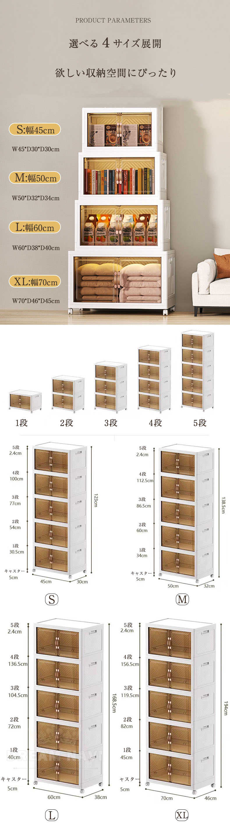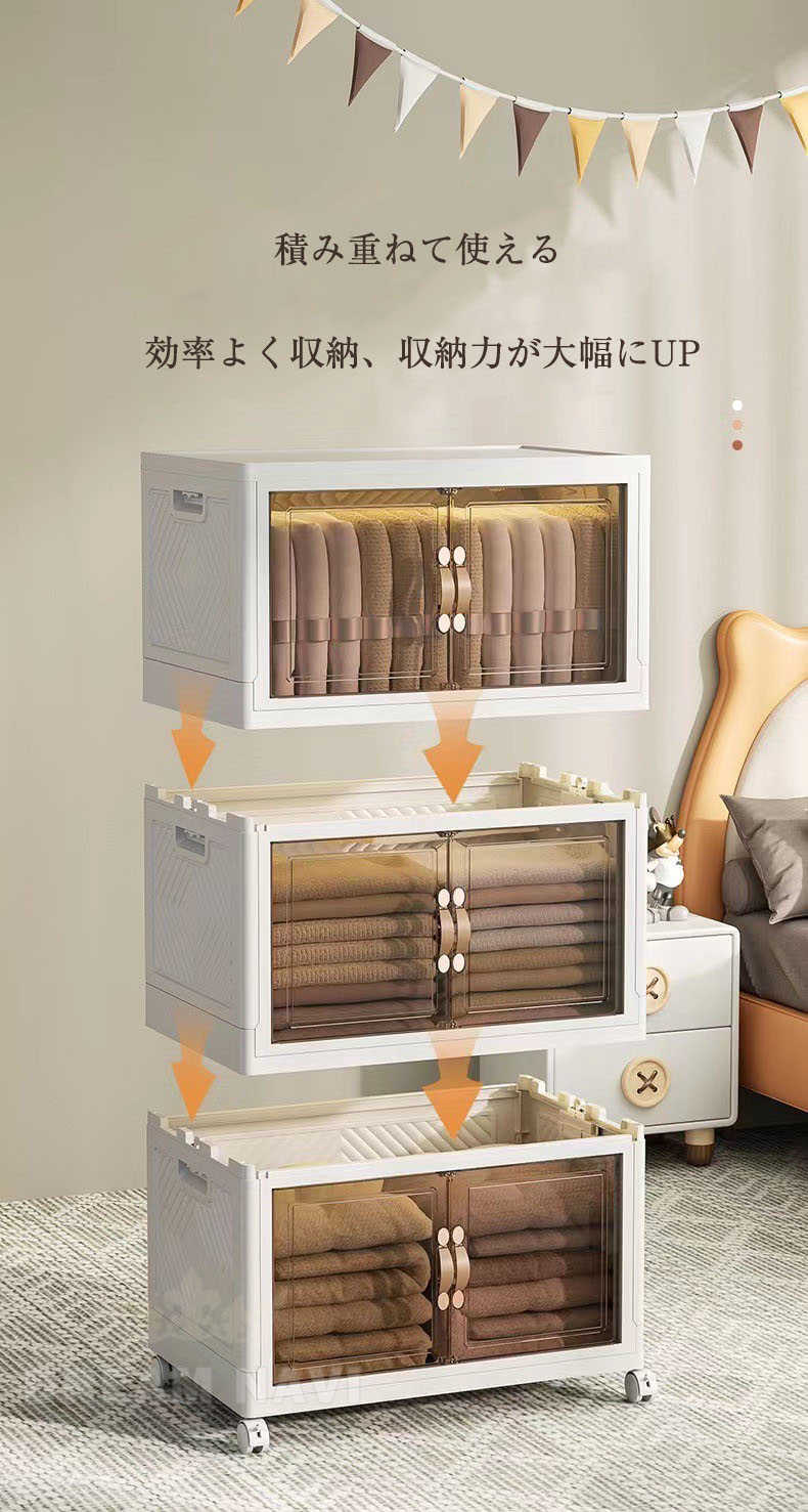 収納ボックス キャスター付き 折畳み S(幅45cm) M(幅50cm) L(幅60cm) XL(幅70cm) 一段 二段 三段 四段 五段