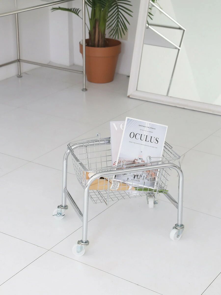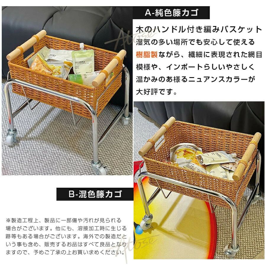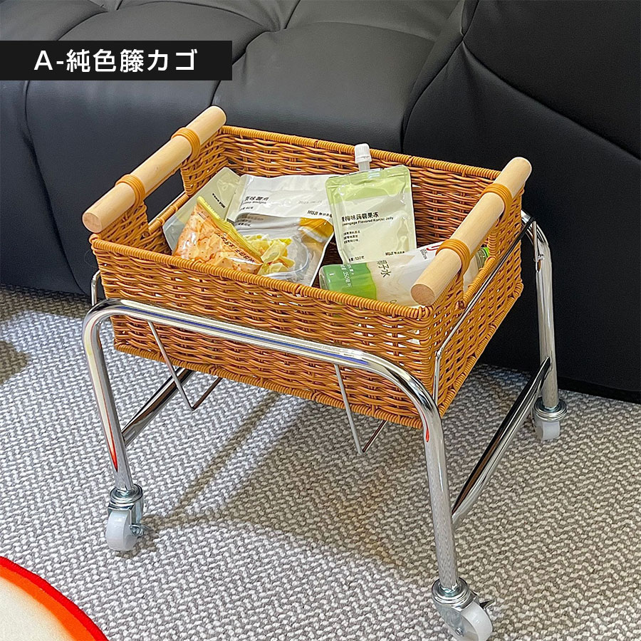 キャスターワゴン ハンドル付きカラーバ バッグ 小物 ブランド雑貨 超目玉商品 シルバー A-純色籐カゴ B-混色籐カゴ