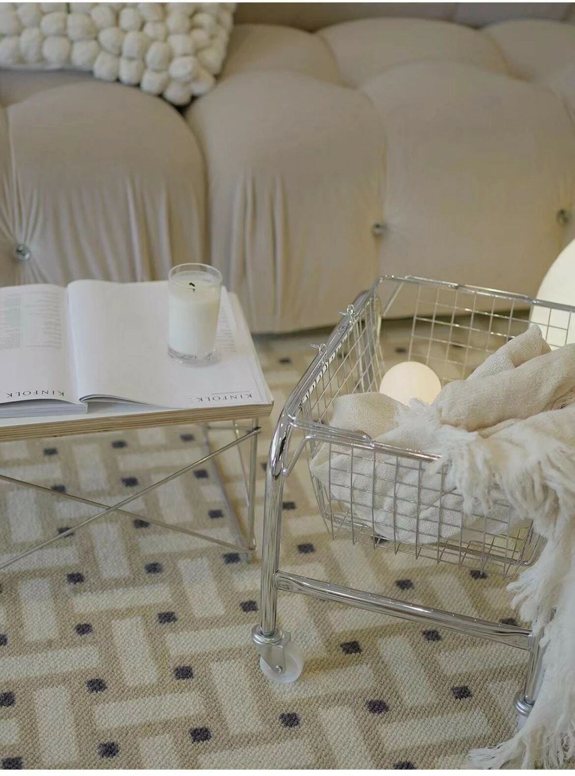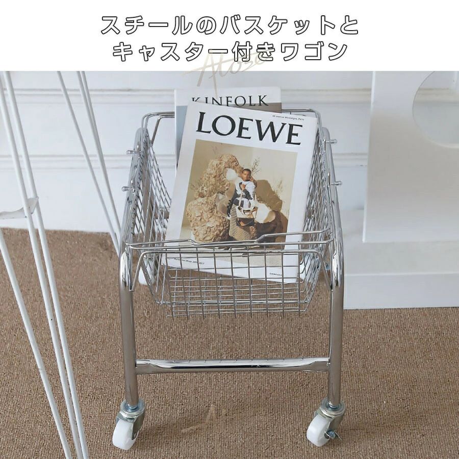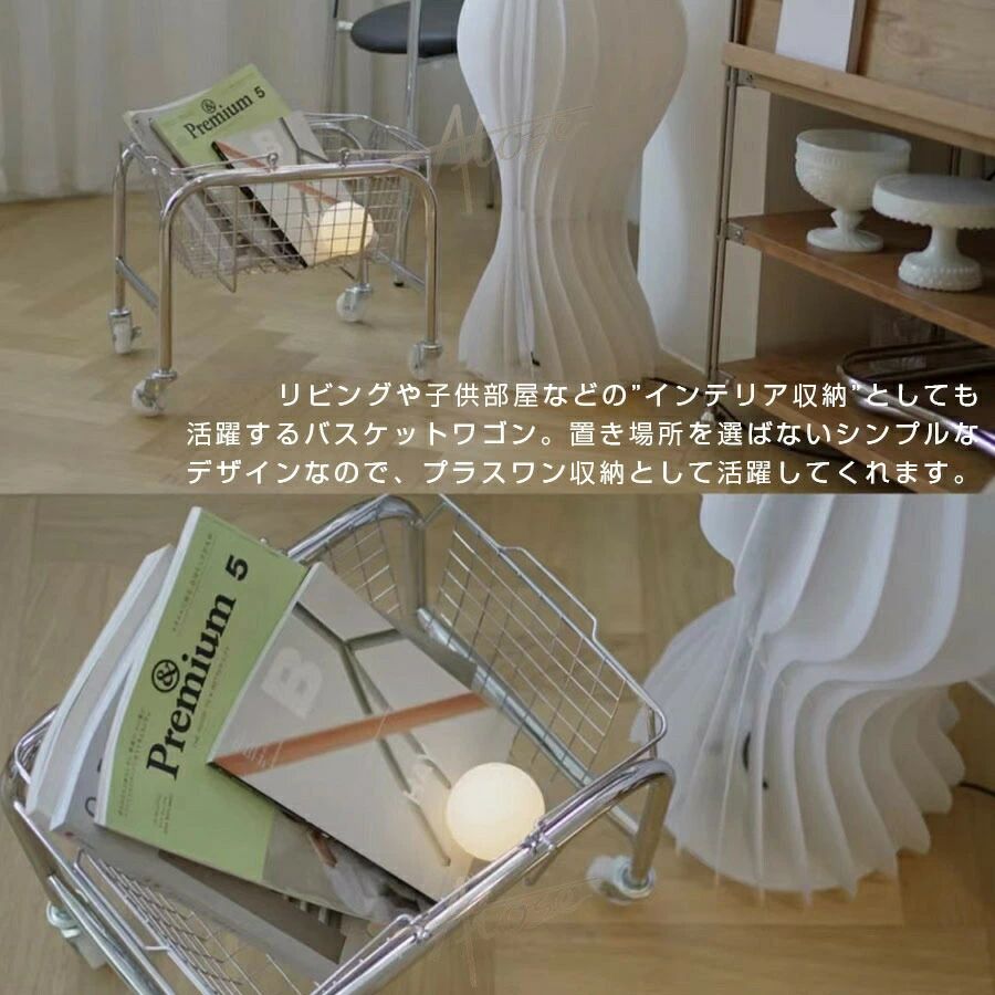 】カラーバスケットがインテリアのアクセントになるバスケットワゴンです。