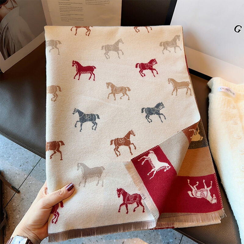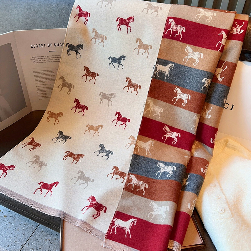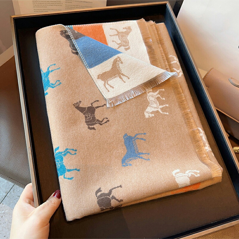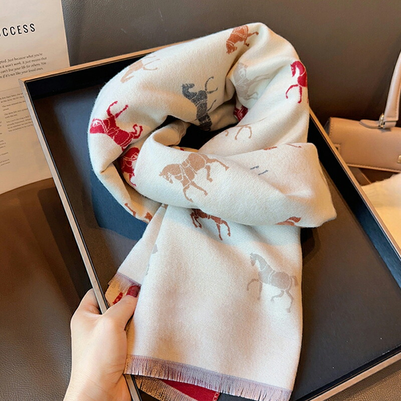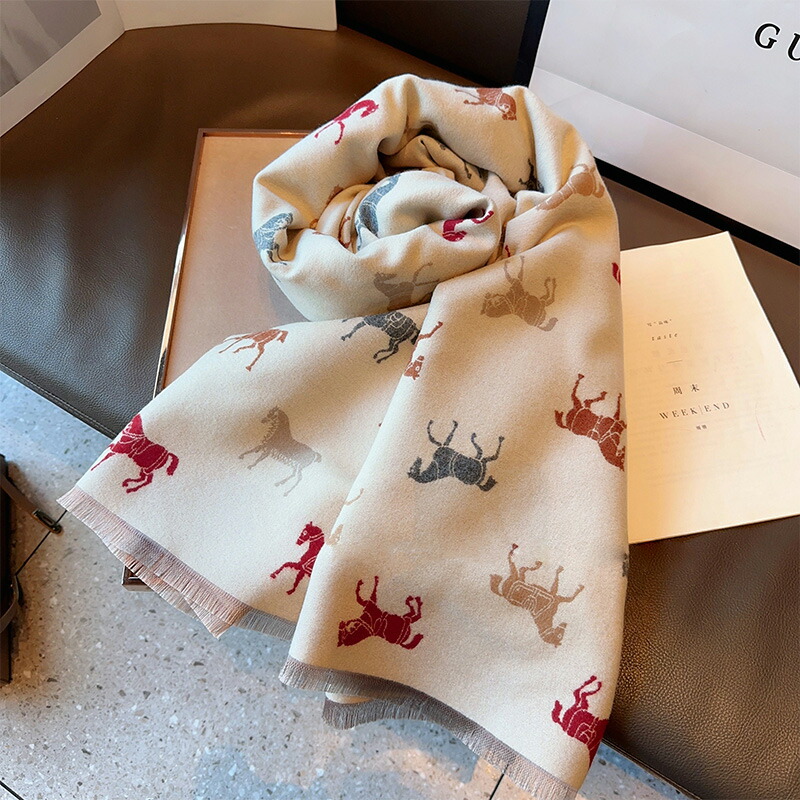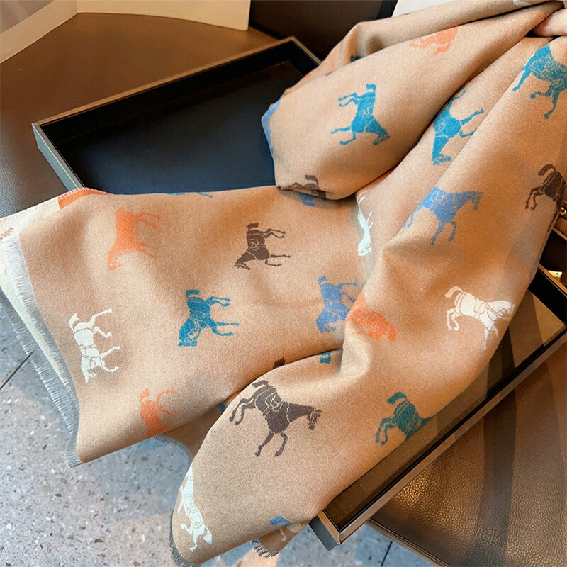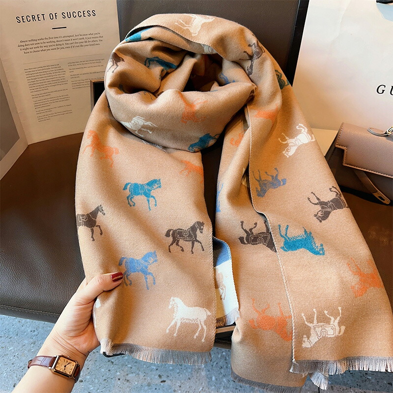 ストール ホース柄 大判マフラー レディース スカーフ ショール ブランケット兼用 ひざ掛け 防寒 暖かい おしゃれ クリスマス プレゼント 誕生日 ギフト 母の日