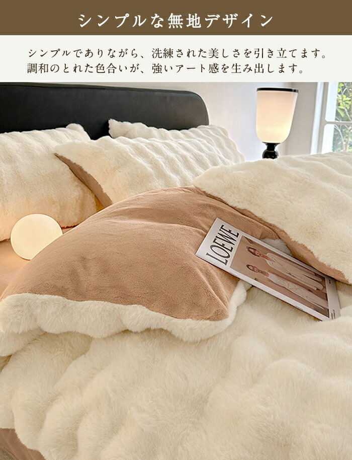 冬の寝室を優しく包み込む、保温性の高いボア寝具。可愛いデザインで、防寒対策はもちろん、お部屋の雰囲気も明るくします。