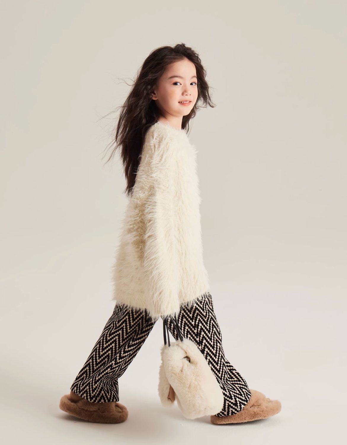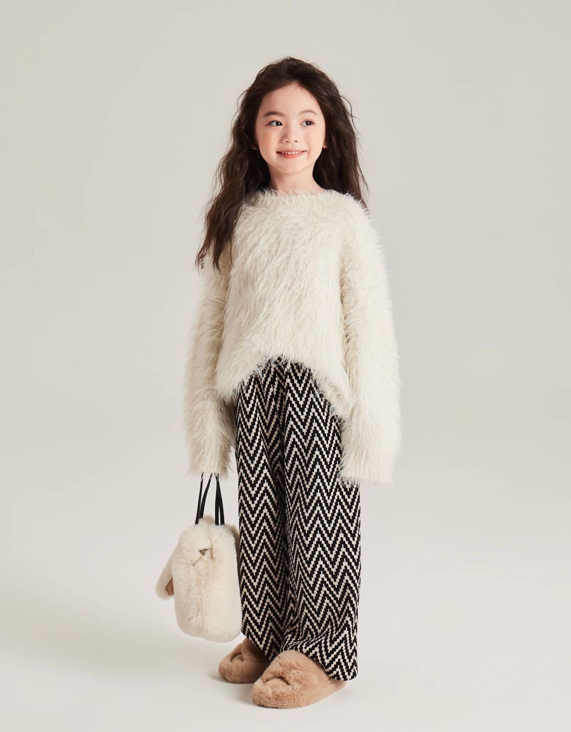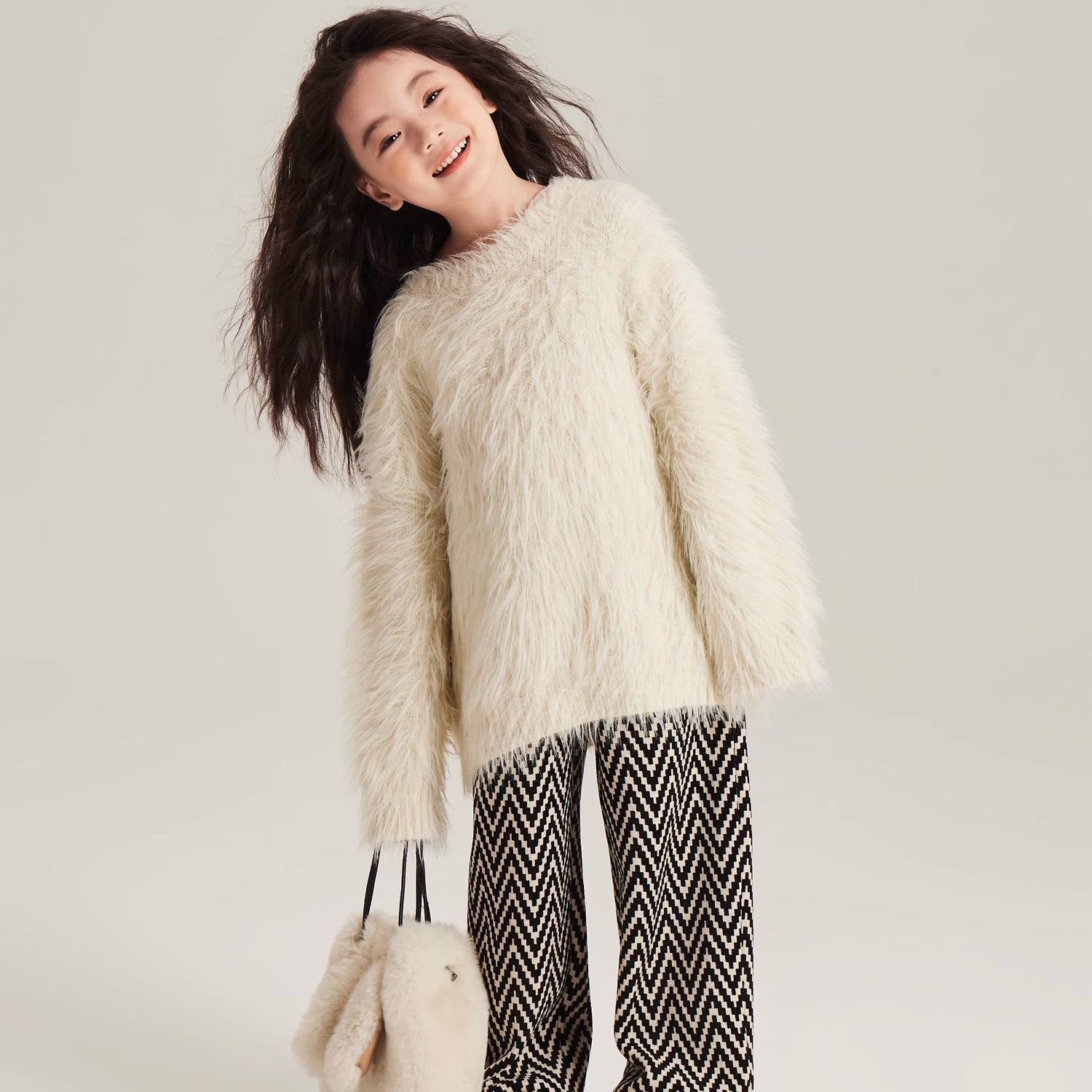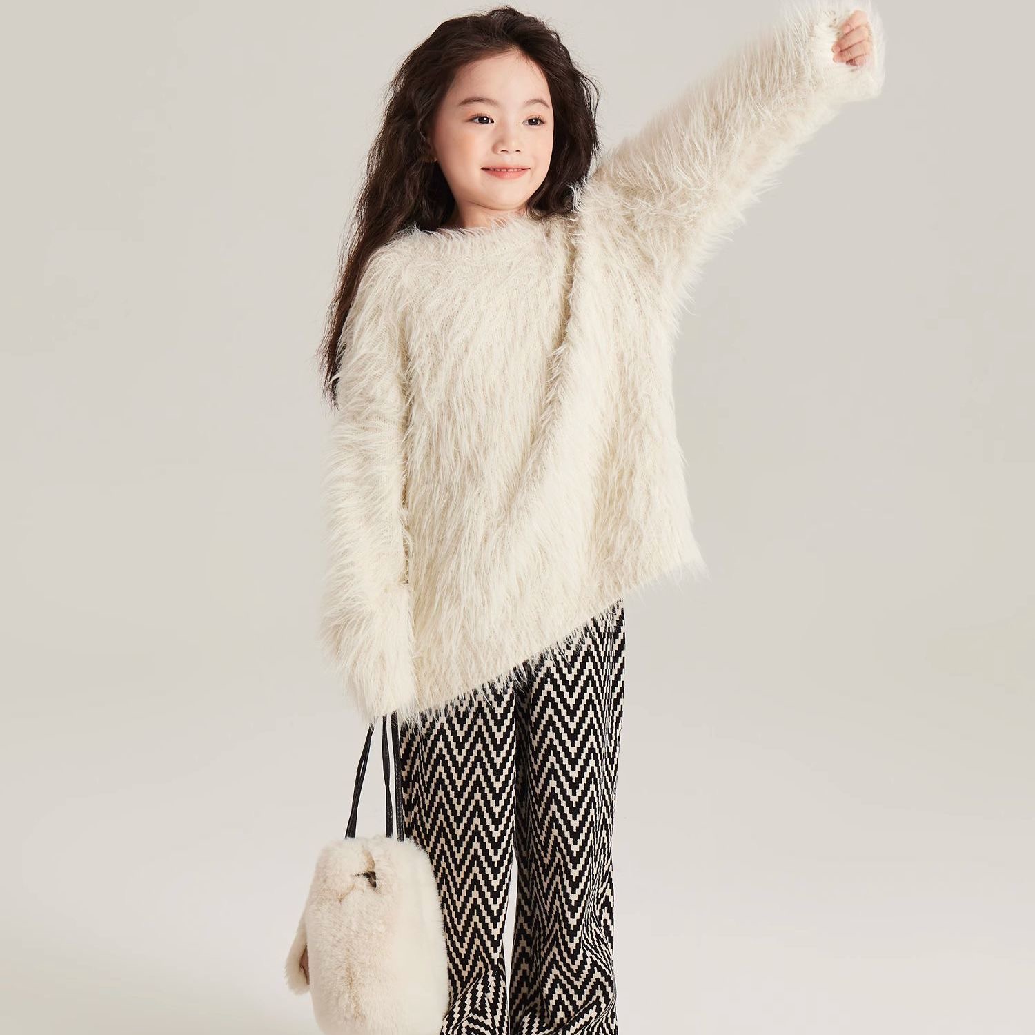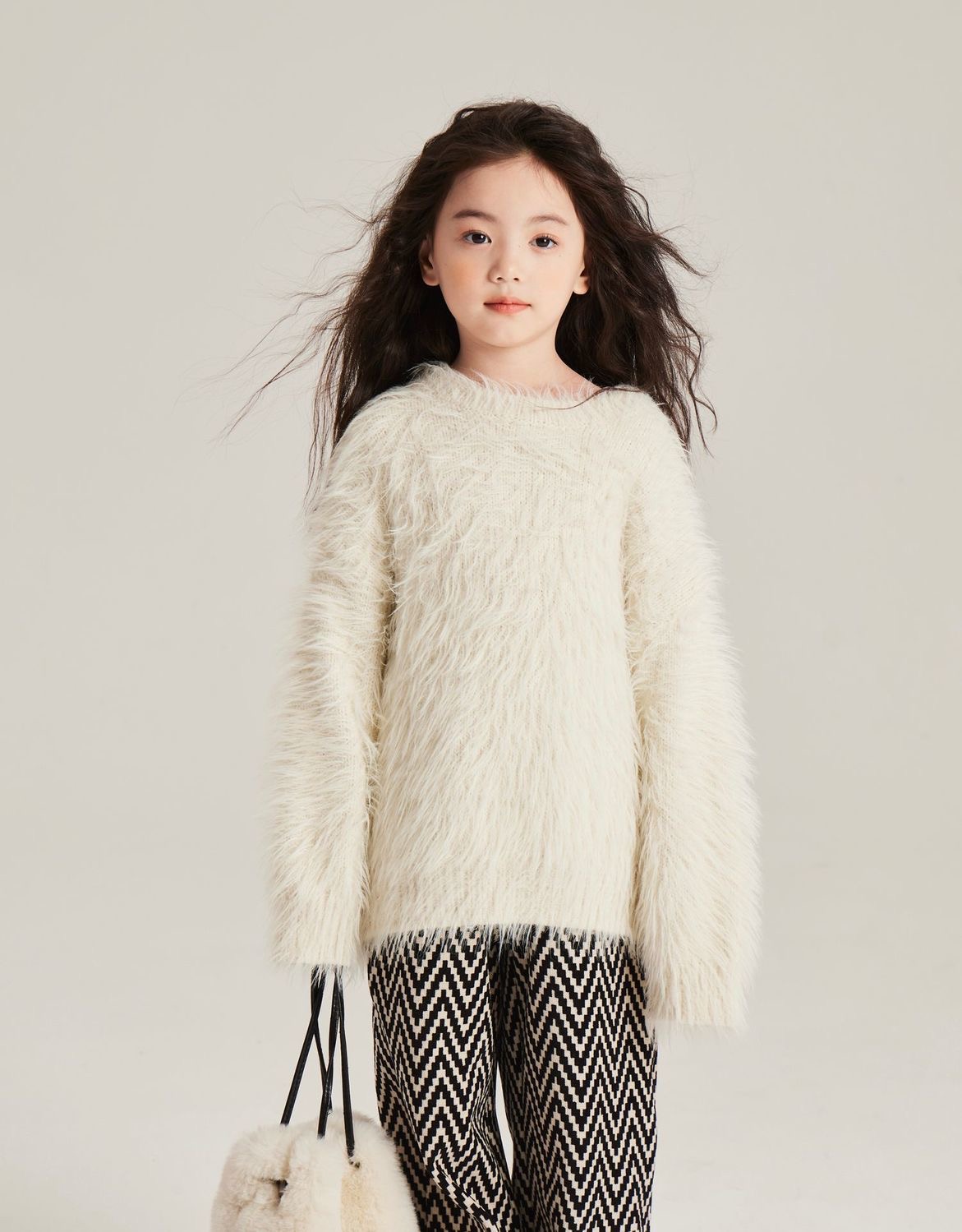 シャギーニット セーター 長袖 北欧風 裏毛 ふわふわ モヘア風 ゆったり 無地 ガールズ キッズ 秋冬用 通園 入学 卒園 防寒 暖かい メンズ レディース ベビー 大きいサイズ