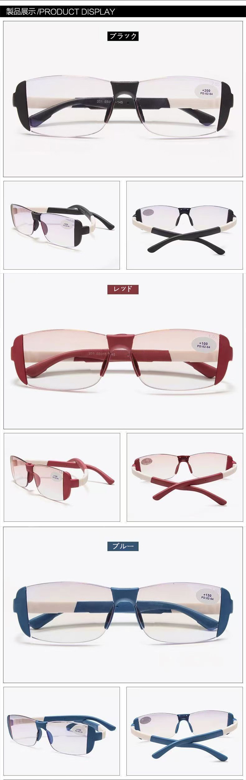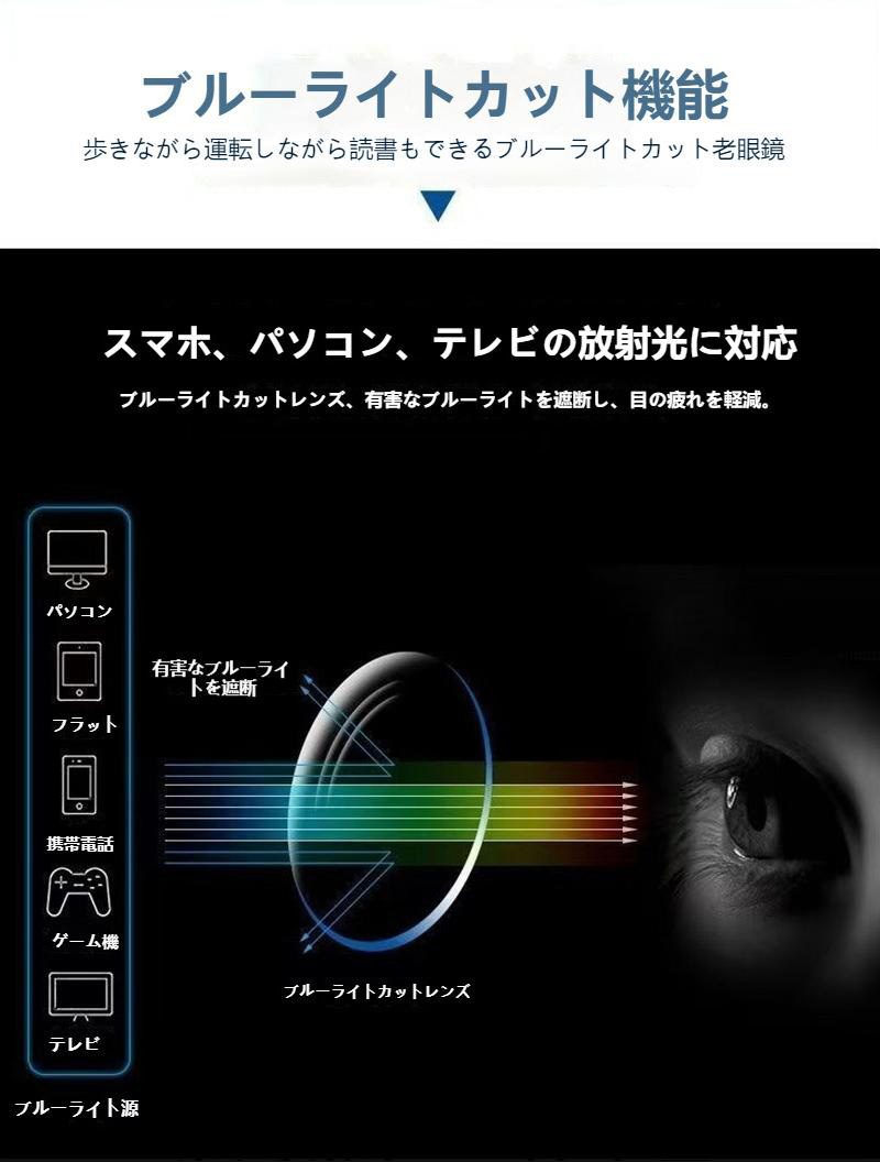 老眼鏡 遠近両用 ブルーライトカット 眼鏡 サングラス 老眼鏡 特集 ブルー レッド ブラック +100度 +150度 +200度 +250度 +300度 +350度 +400度