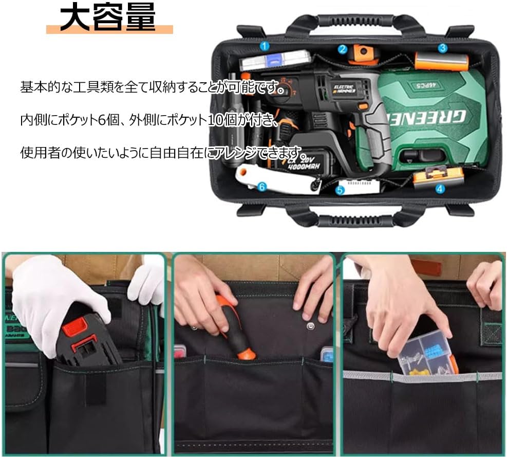 ツールバッグ 工具バッグ 工具袋 2w グリーン16インチ グリーン18インチ グリーン20インチ グリーン23インチ