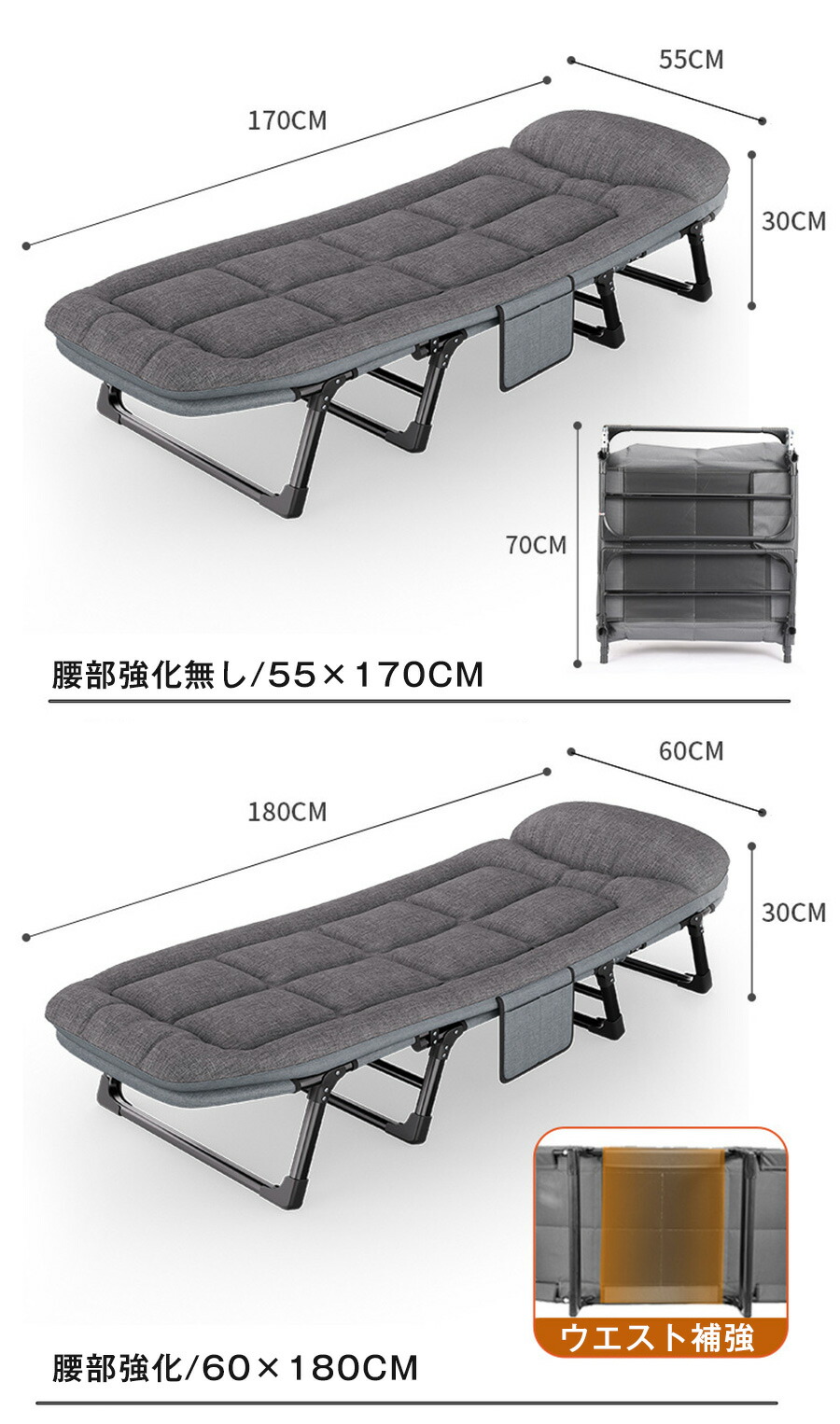 折りたたみベッド 組立不要 完成品 シ 腰部強化無し/55×170cm 腰部強化/60×180cm 腰部強化/66×180cm 腰部強化/66×190cm 腰部強化/66×200cm