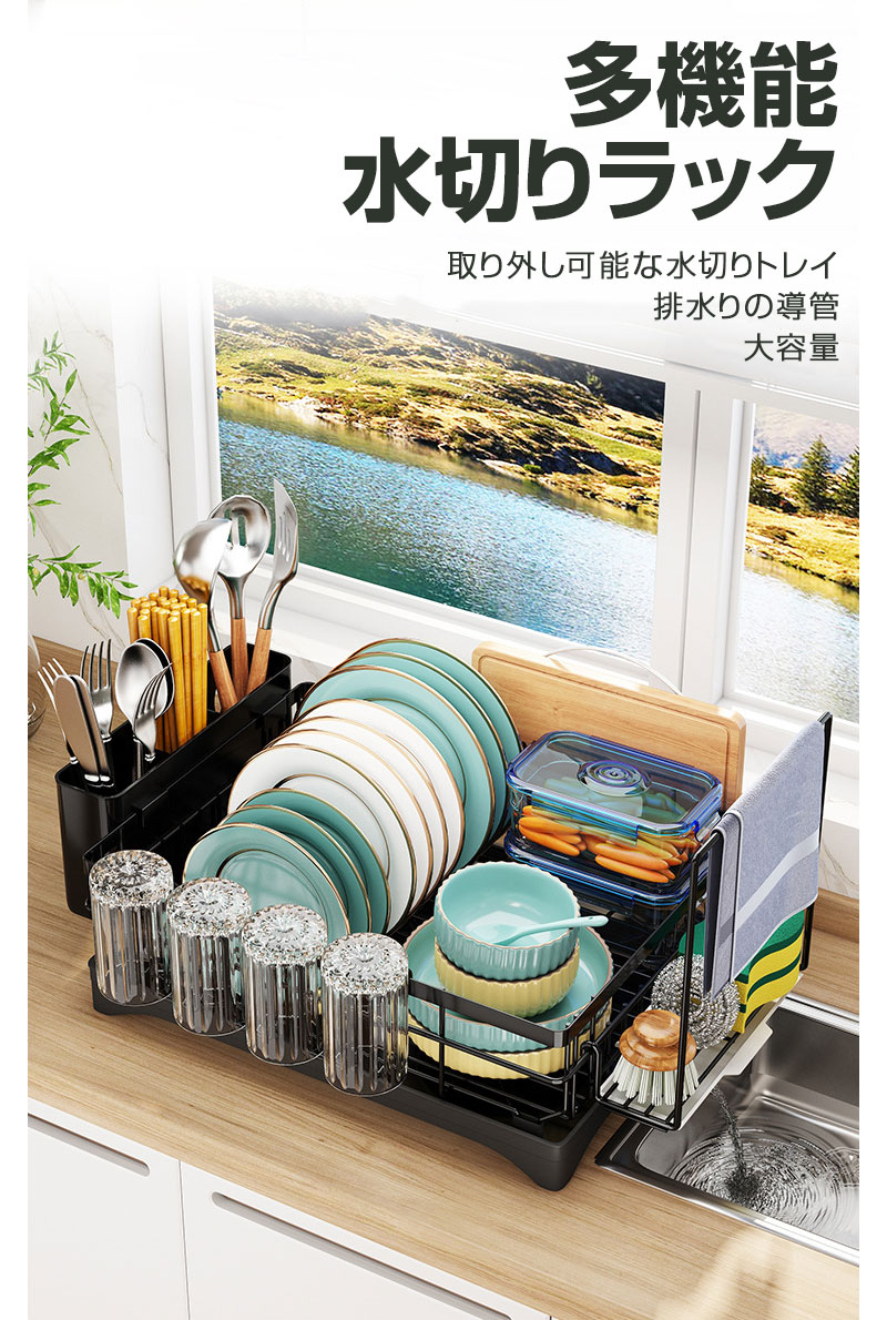 水切りラック 大容量 シンク上 水切りかご ステンレス 食器 水切りラック 省スペース 水切りカゴ おしゃれ 流し台 キッチン ラック 水切り 流れる 横置き 箸立て まな板立て 皿 おしゃれ 抗菌 新生活