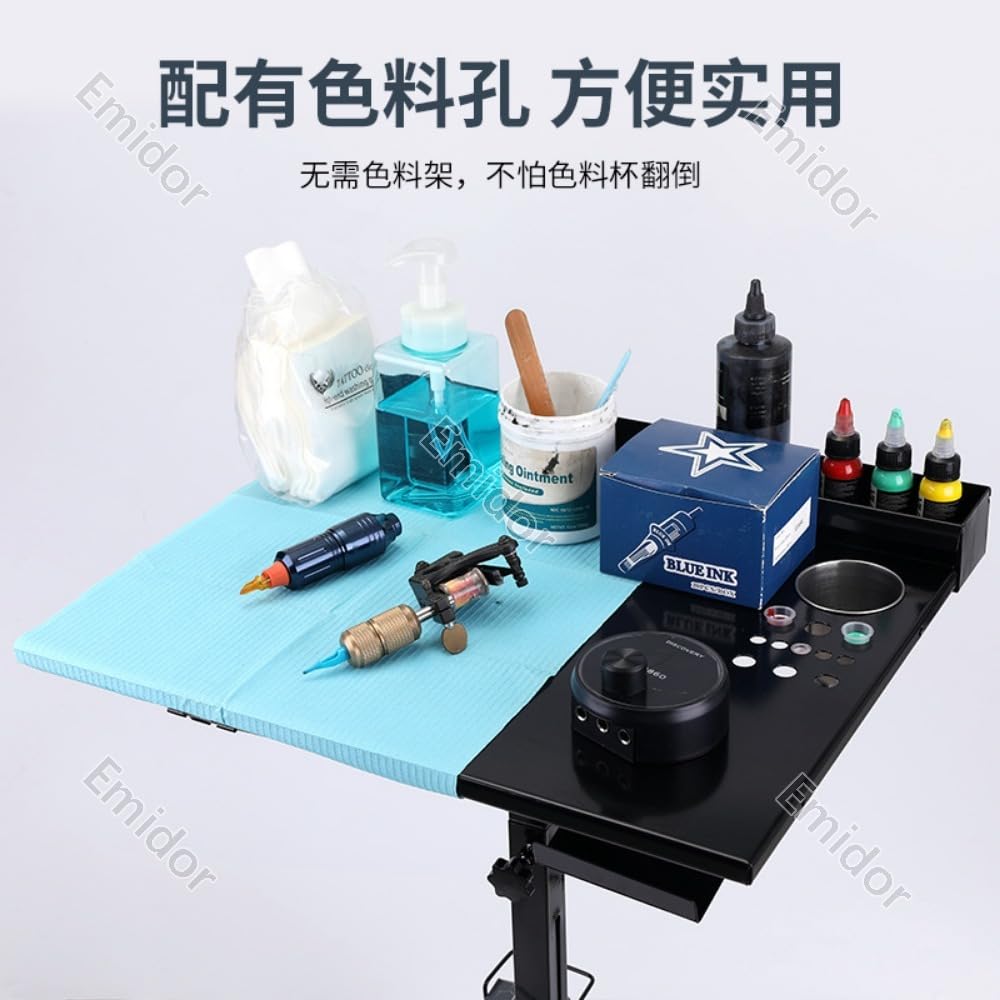 テーブルです タトゥーテーブル作業台、ポータブル、調節可能なテーブル、滑り止め、収納ラック付き、タトゥーパーラーに最適