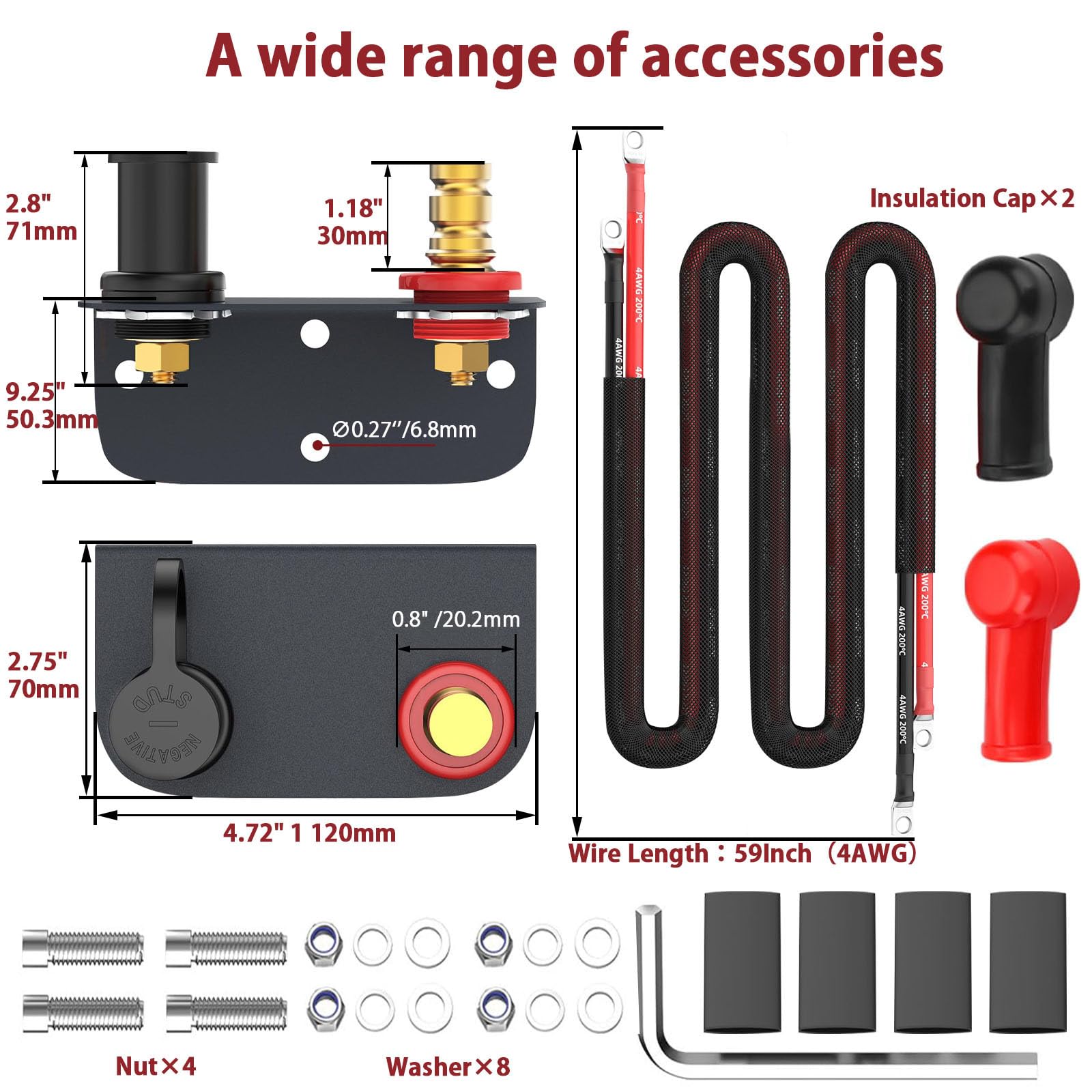 バッテリージャンプポストキット 59.7インチのケーブルと金属絶縁マウントブラケット付き 屋外で高耐久リモートバッテリー充電ポスト バッテリーターミナル再配置キット