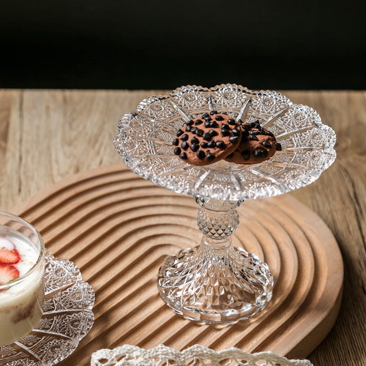 ヨーロッパンガラス大皿 脚付き前菜トレイ ドライフルーツプレート ケーキディスプレイ パーティーデザートプレート 安定素材 耐摩耗 滑らか表面 自宅 レストラン用 20 宴会