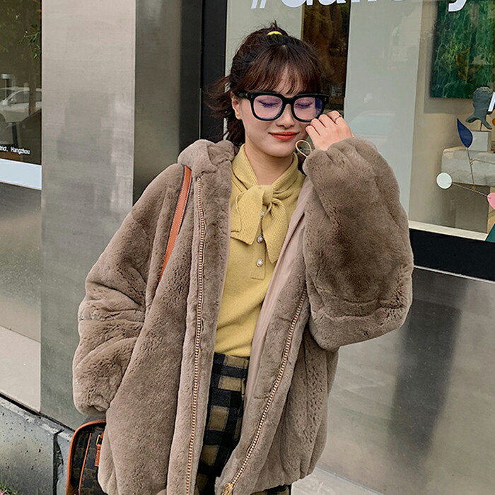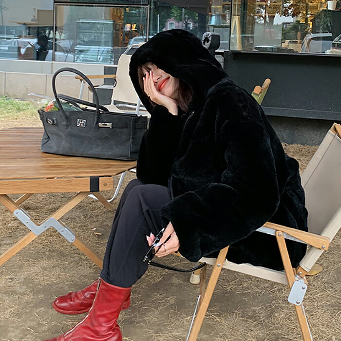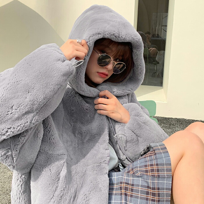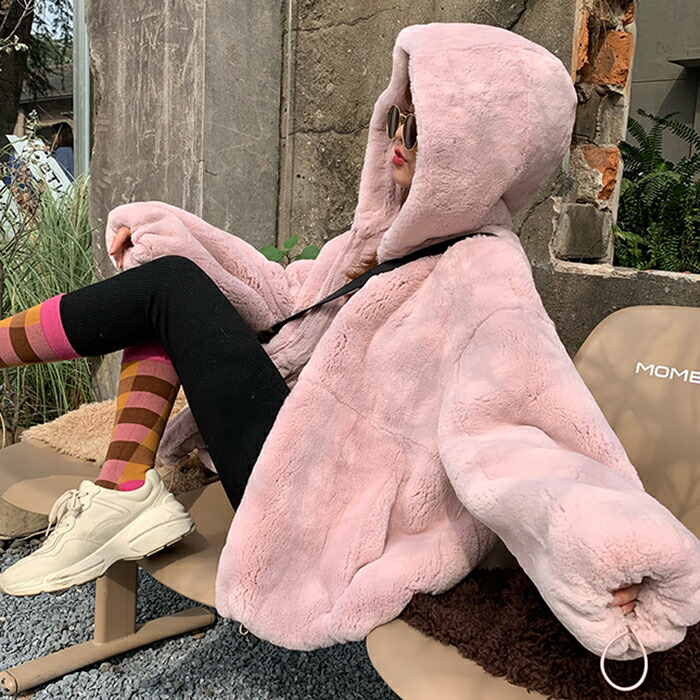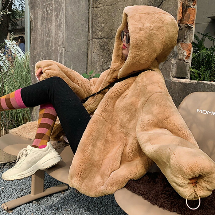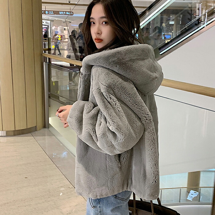 ボリュームファーコート フェイクファー ジャケット レディース 冬 アウター パーカー ブルゾン ミンク風パーカー レディース冬パーカー フード付きファーブル ボリュームフードパーカー