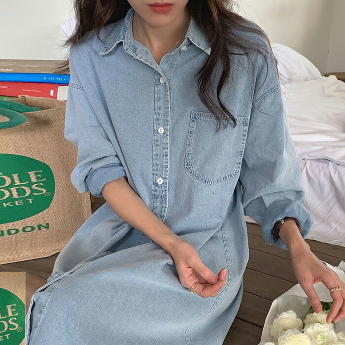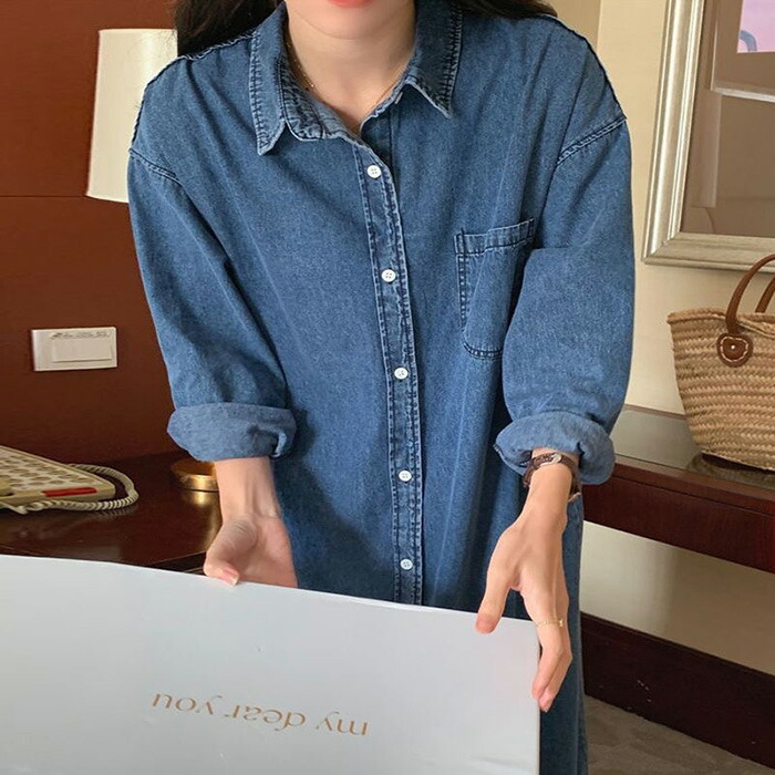 シャツ ワンピース レディース オール トップス シャツ ブラウス 新登場! M L XL 2XL ダークブルー ライトブルー