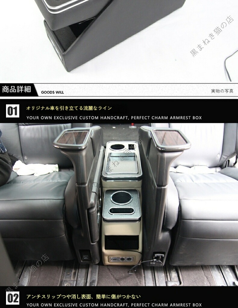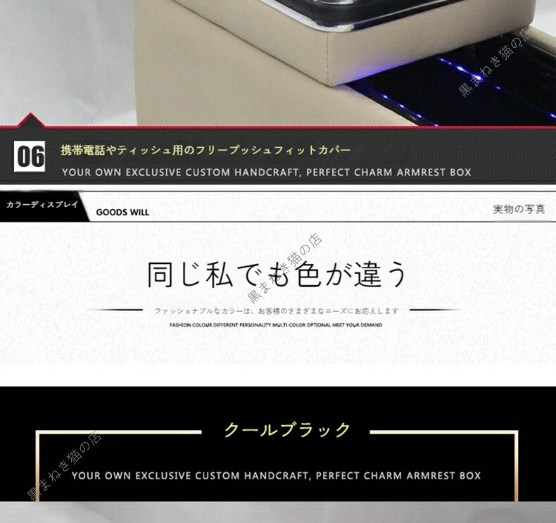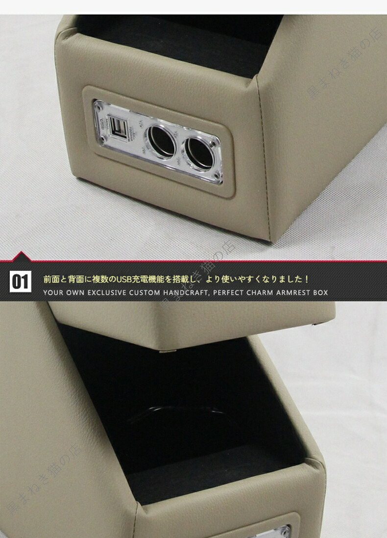 コンソールボックス 車用アームレスト ブラック グレー ベージュ LEDライトが付いていません +LED