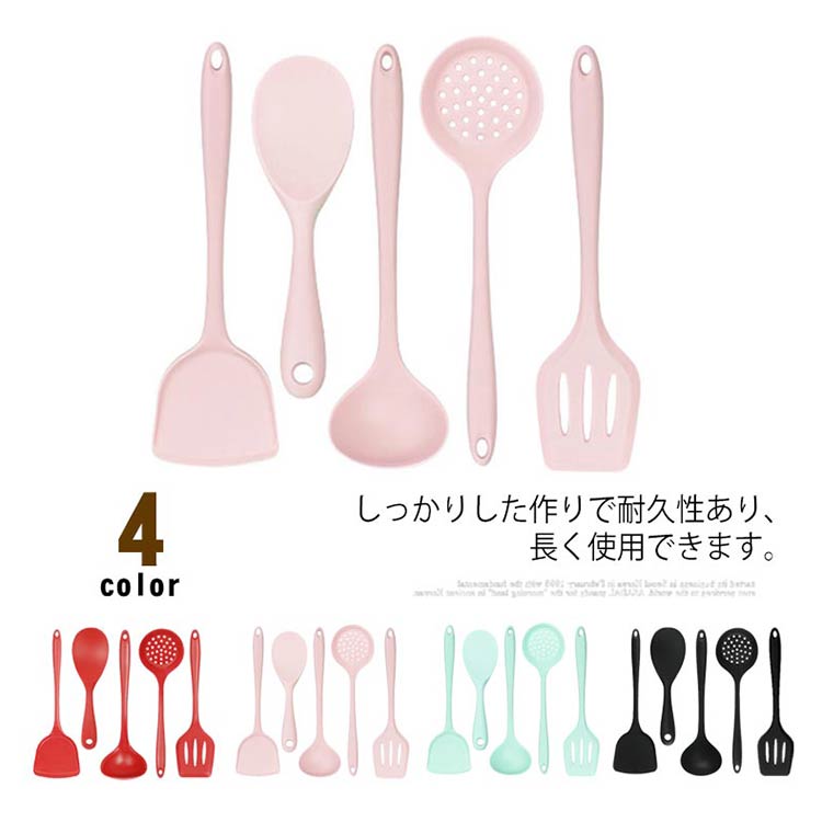 キッチンツール 5点セット シリコン製 キッチン用品 食器 調理器具 人気 ピンク グリーン ブラック レッド