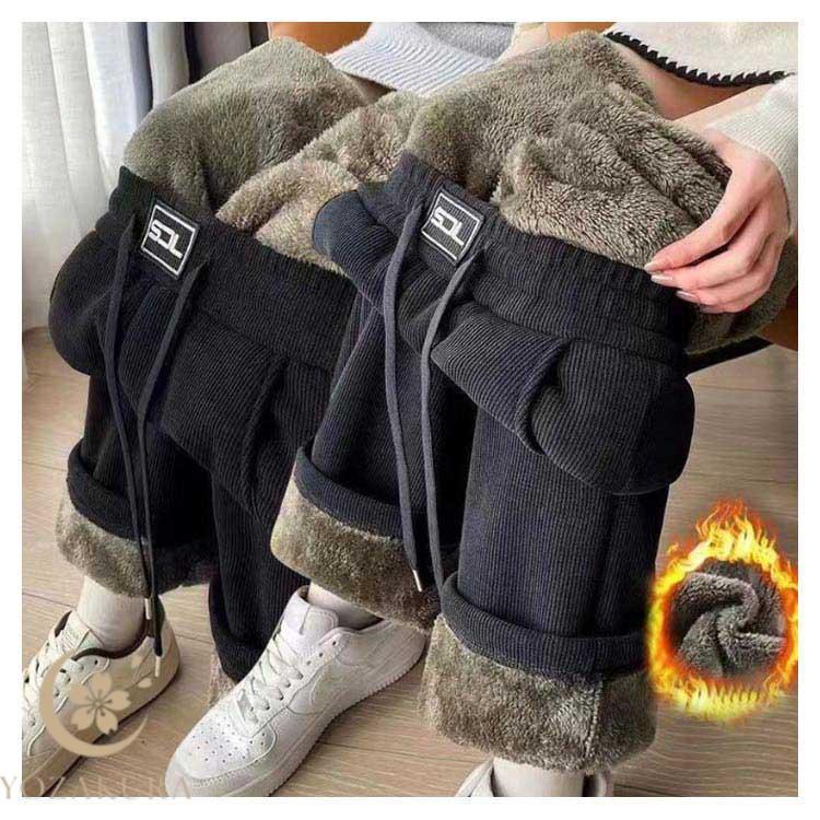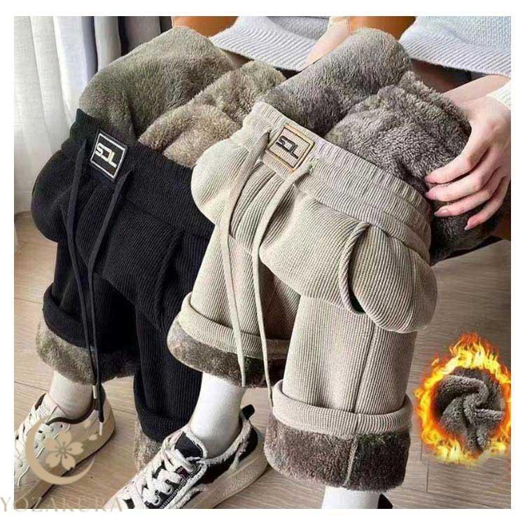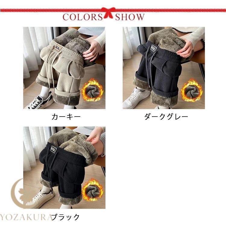 裏起毛 秋 パンツ 長ズボン 冬 もこ レディースファッション 続々登場 カーキー ダークグレー ブラック M L XL 2XL 3XL