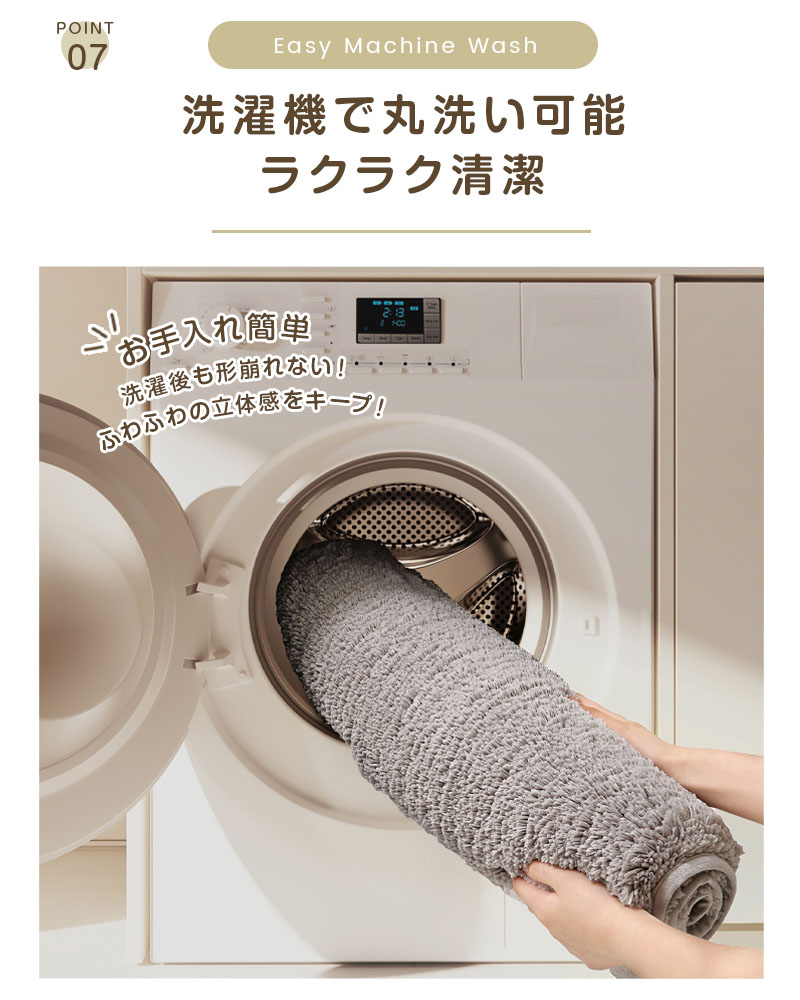 丸洗いしても型崩れしにくく、ふわふわの立体感をキープ。