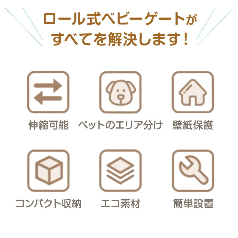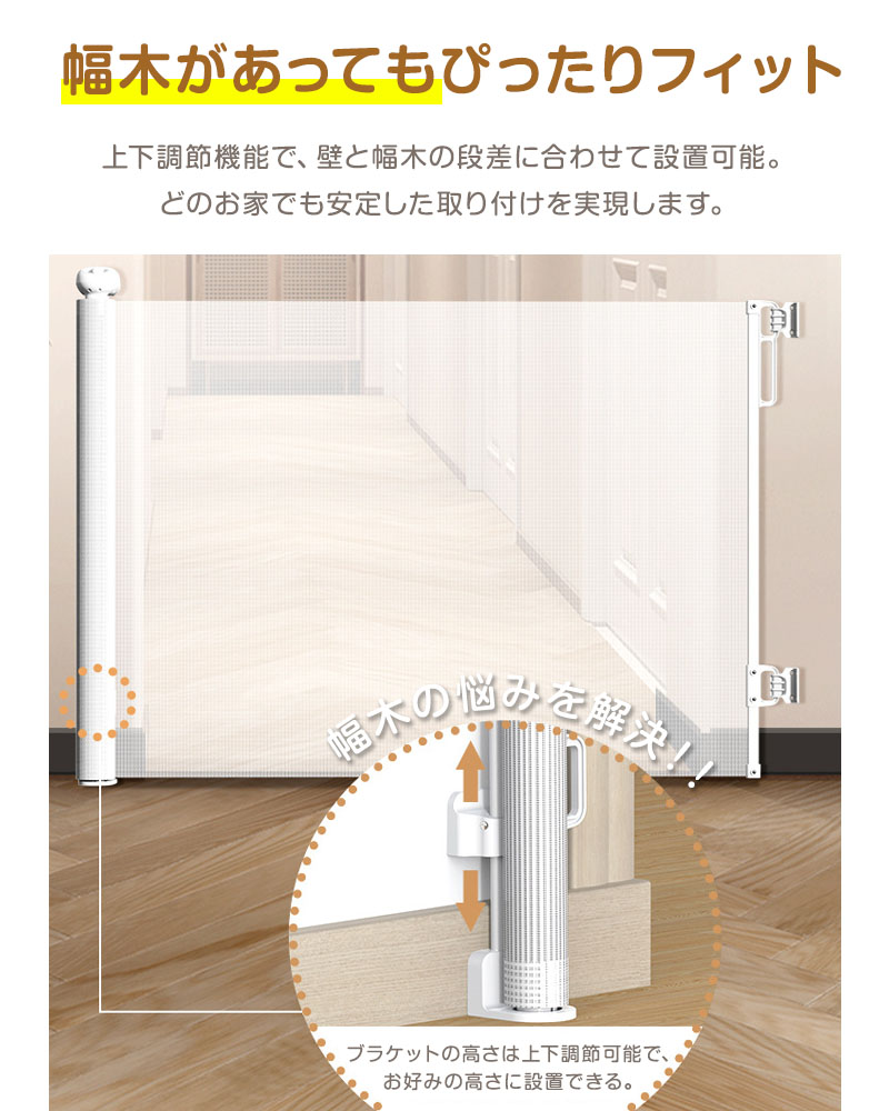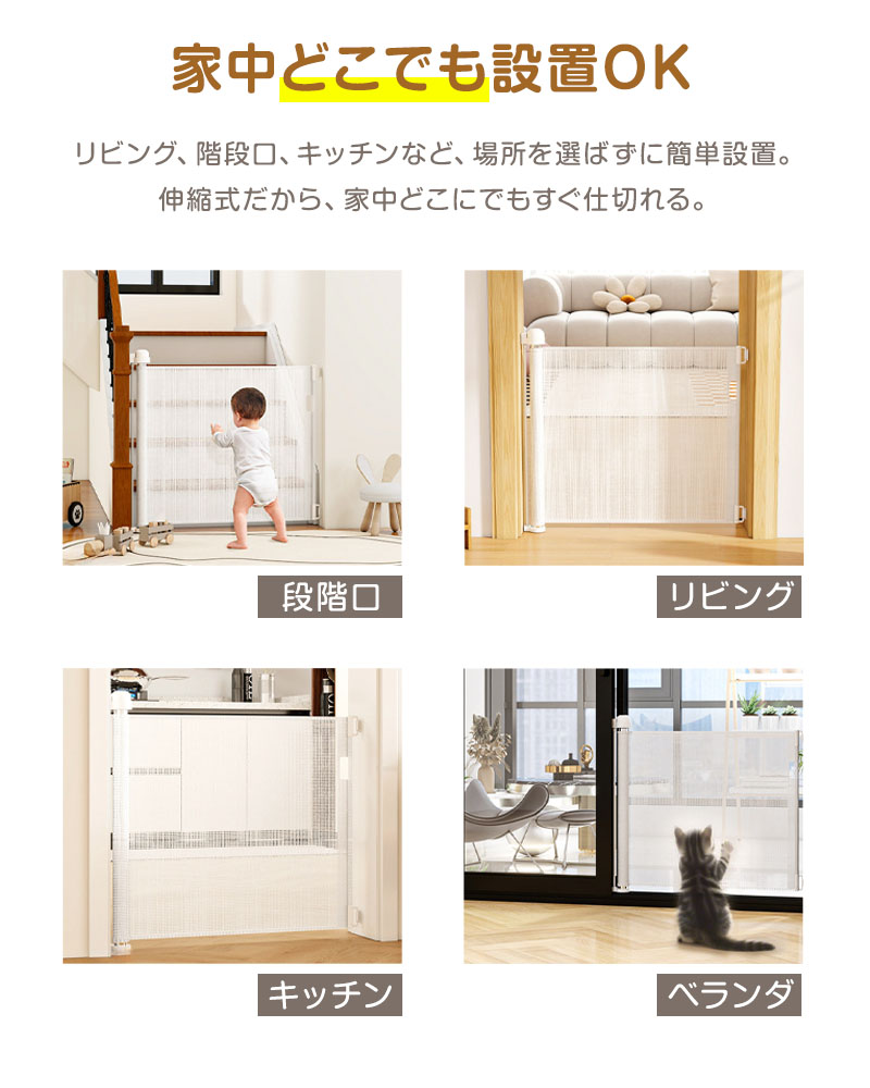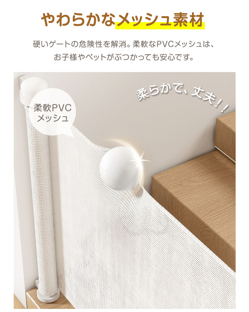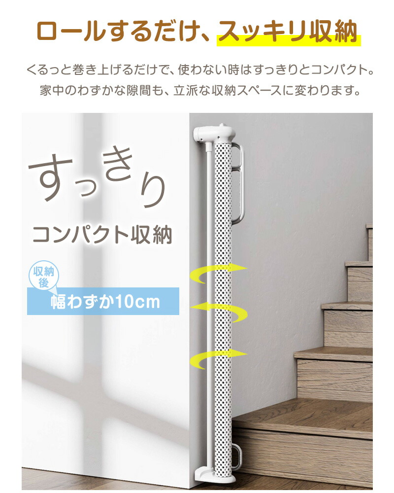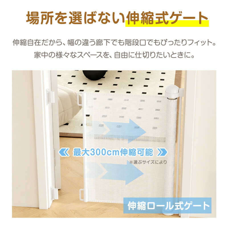 ベビーゲート ロール式 伸縮 階段上 最大300cm ペットゲート 階段 階段口 玄関 キッチン 巻き取り式 ベビーガード 犬 猫 子供用 壁保護 簡単設置 穴あけ不要 セーフティゲート