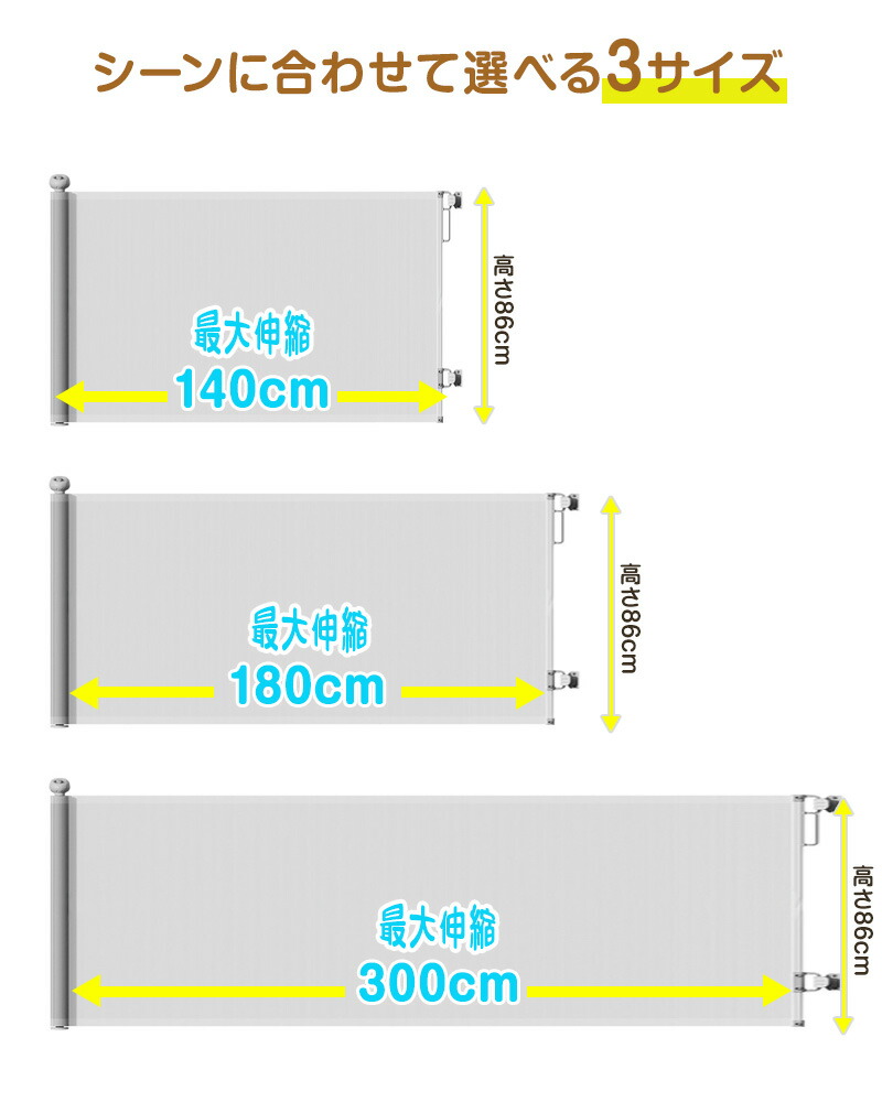 ベビーゲート ロール式 伸縮 階段上 ベビー セーフティーグッズ ベビーゲート 新登場! ホワイト グレー ブラック 幅:140cm 幅:180cm 幅:300cm