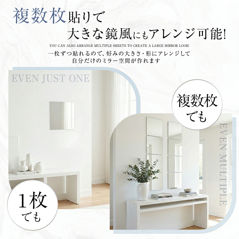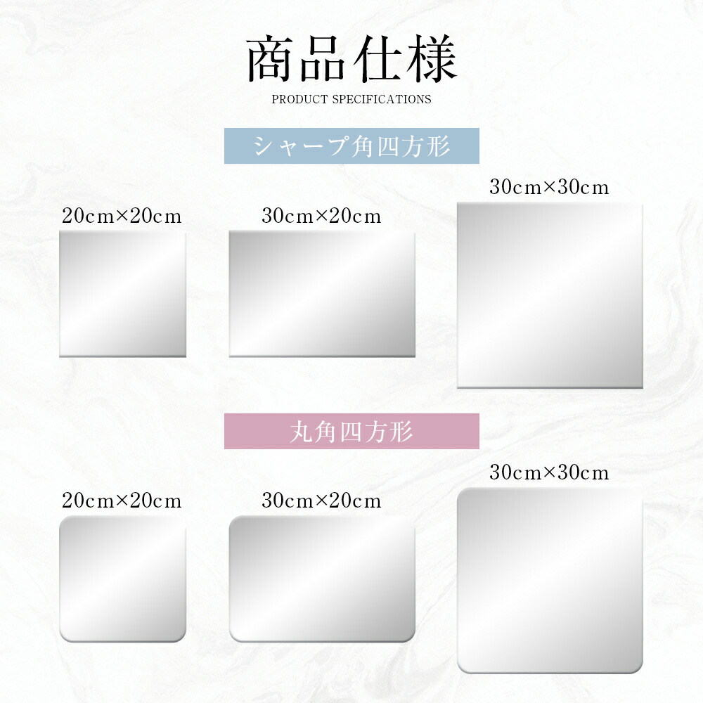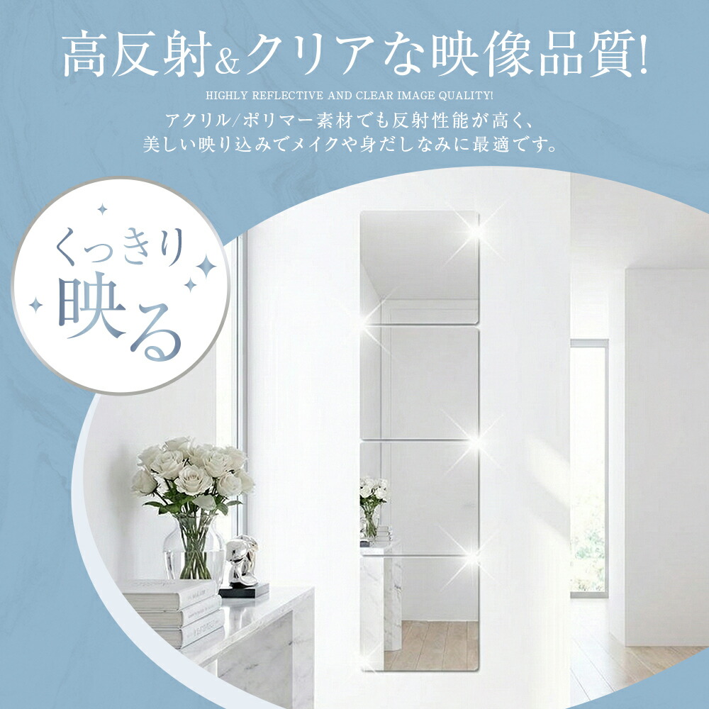割れない鏡 貼るだけ ミラー アクリル シャープ角 丸角 20cmx20cm(2枚) 20cmx20cm(4枚) 20cmx20cm(6枚) 30cmx20cm(2枚) 30cmx20cm(4枚) 30cmx20cm(6枚) 30cmx30cm(2枚) 30cmx30cm(4枚) 30cmx30cm(6枚)