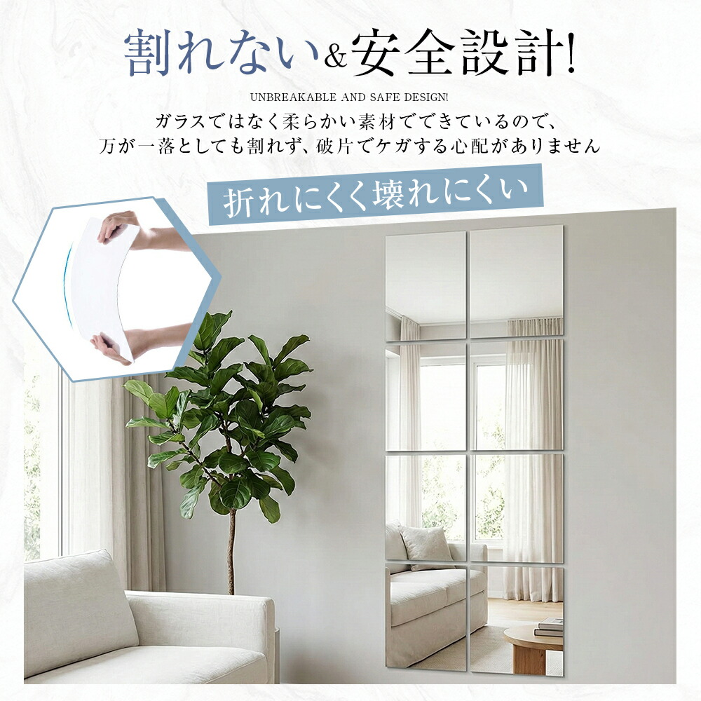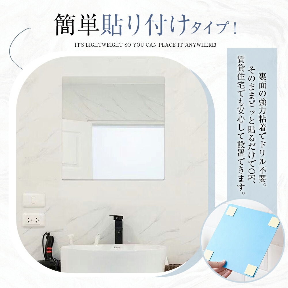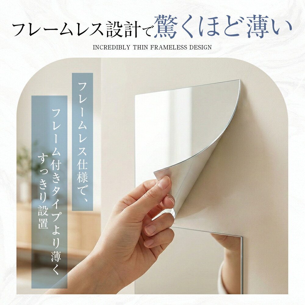 割れない鏡 貼るだけ ミラー アクリルミラー 軽量 軽い 割れにくい フィルムミラー 壁掛け フレームレス 子ども ペット対応 賃貸住宅にOK 安全