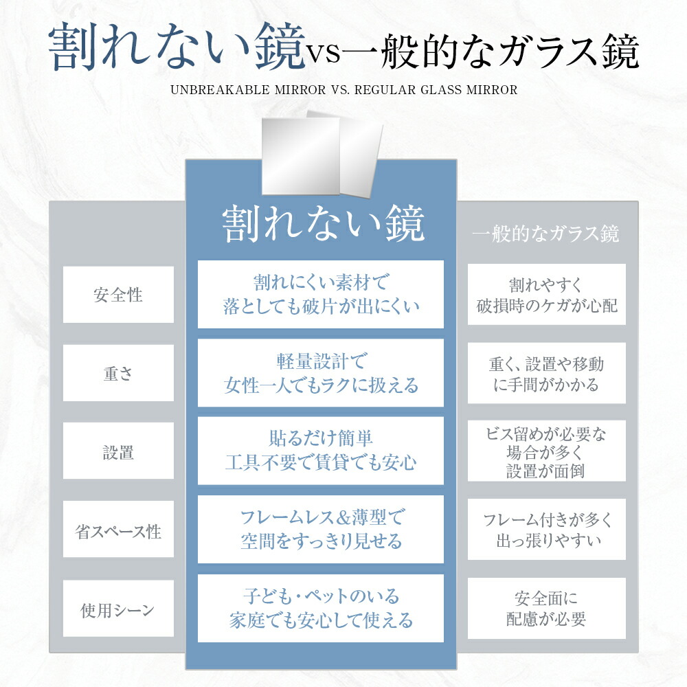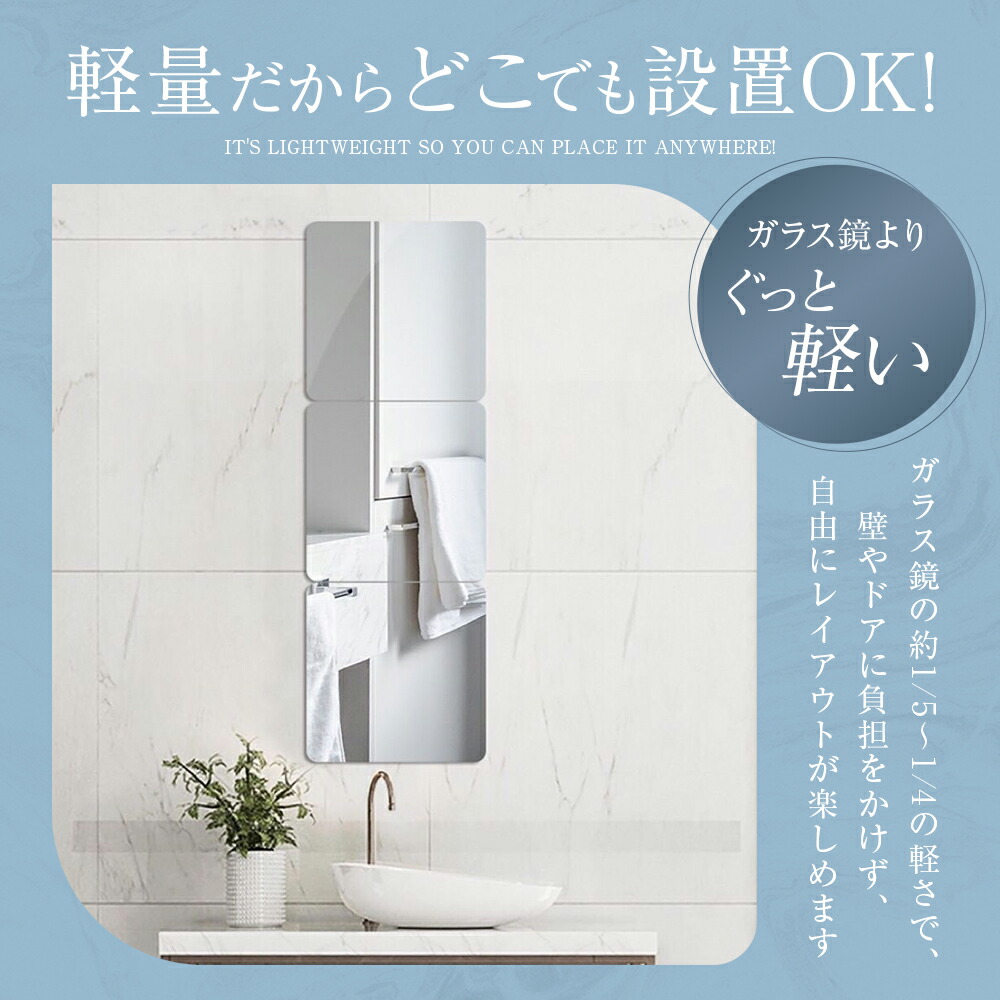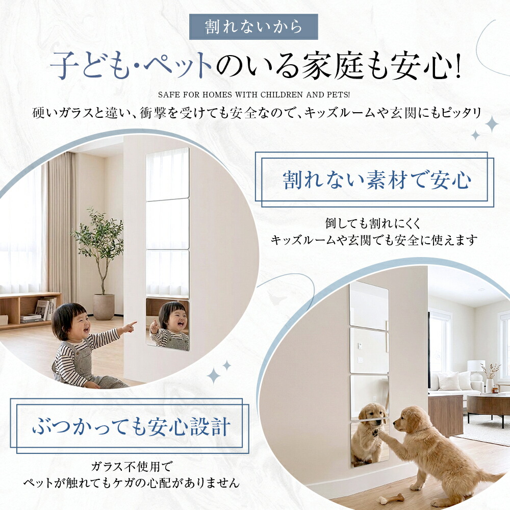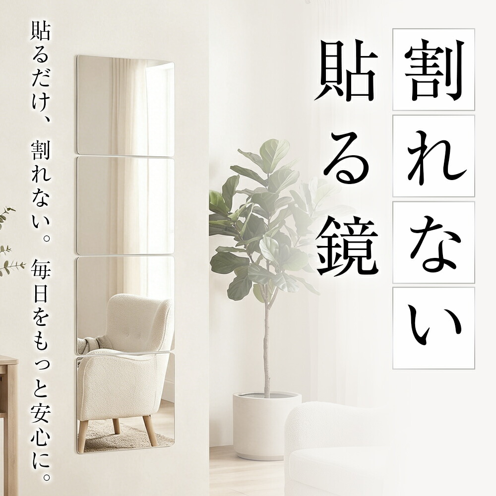 割れない鏡 貼るだけ ミラー アクリルミラー 軽量 軽い 割れにくい フィルムミラー 壁掛け フレームレス 子ども ペット対応 賃貸住宅にOK 安全