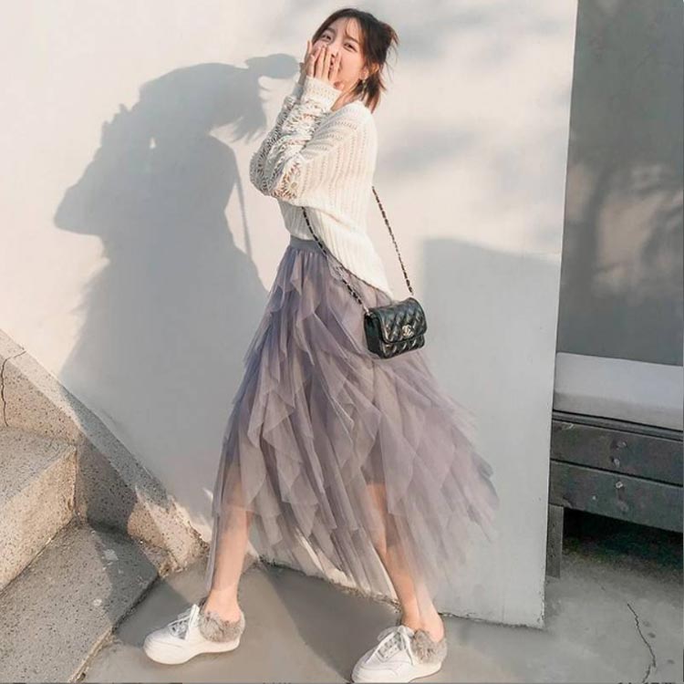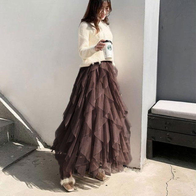 アシンメトリースカート チュールスカー レディースファッション 人気 ホワイト ブラック グレー ピンク ベージュ ブラウン S M L XL 2XL