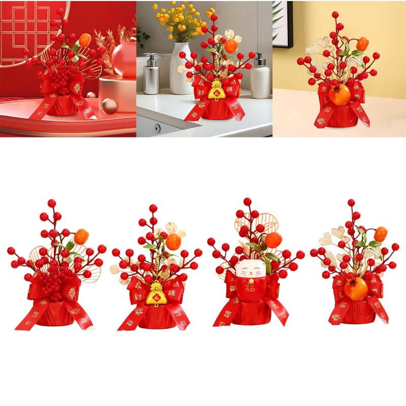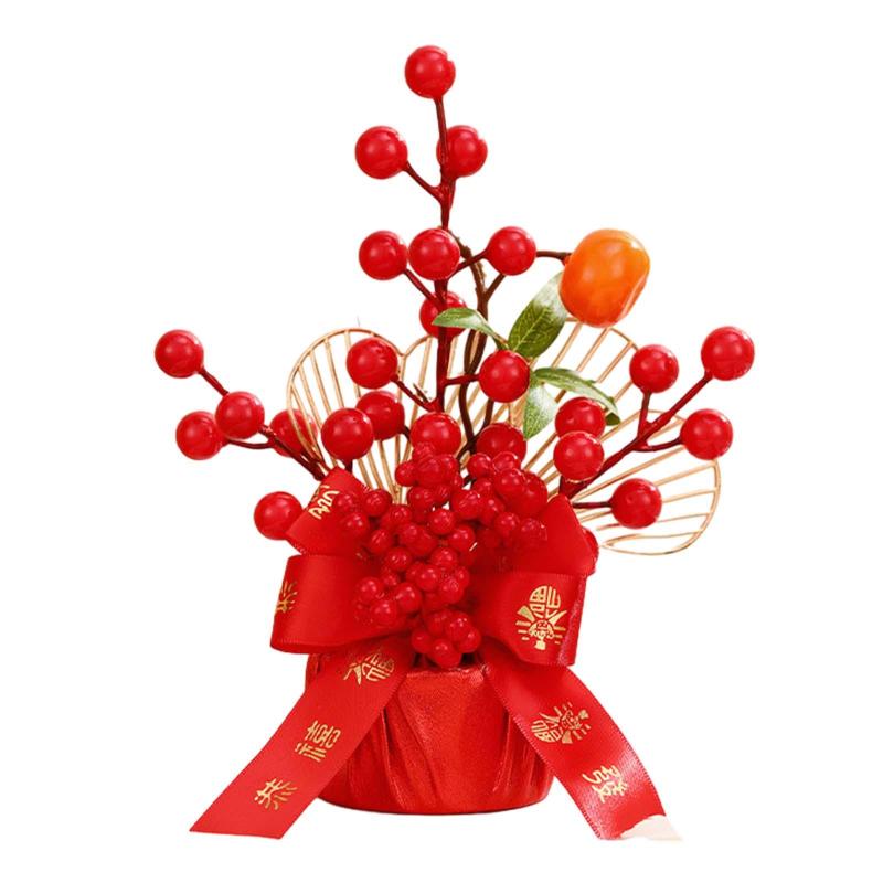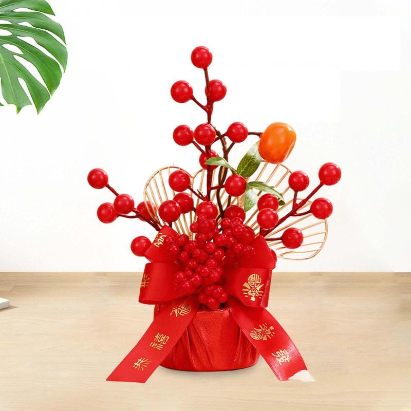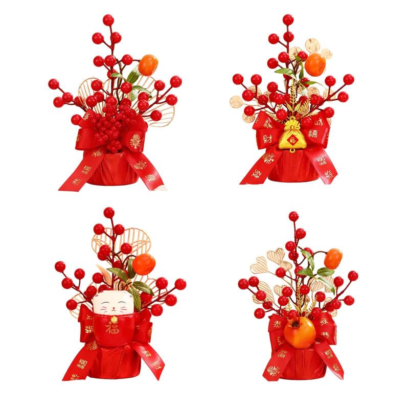 中国の旧正月装飾造花祝福バケツデスクギ ベリー ラッキーポーチ 猫 ザクロ