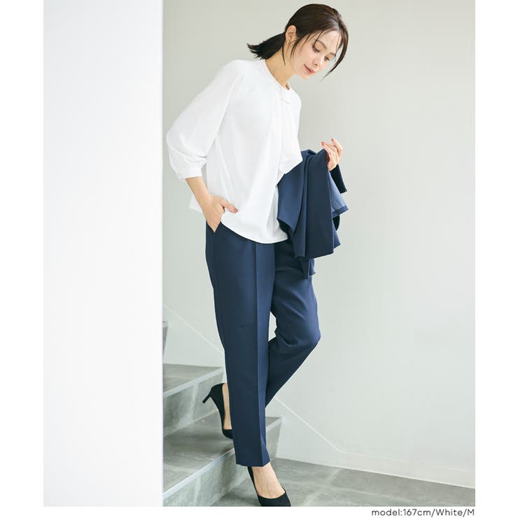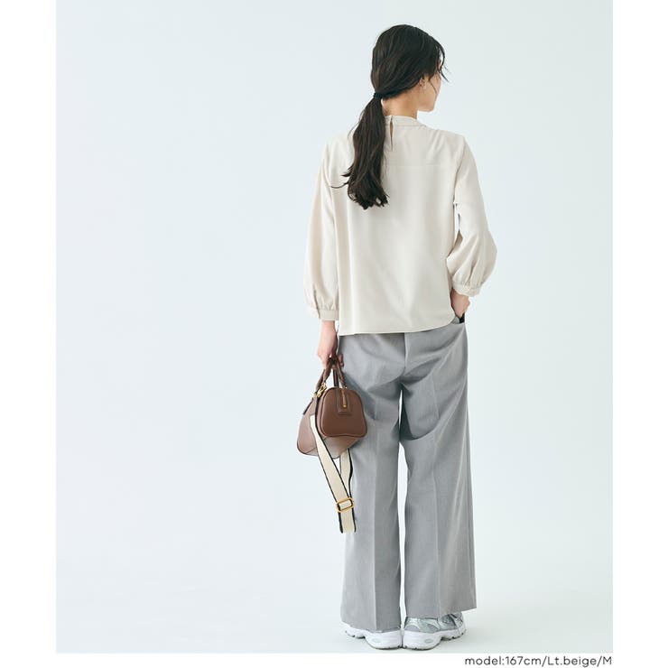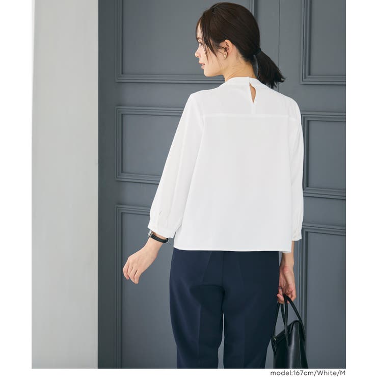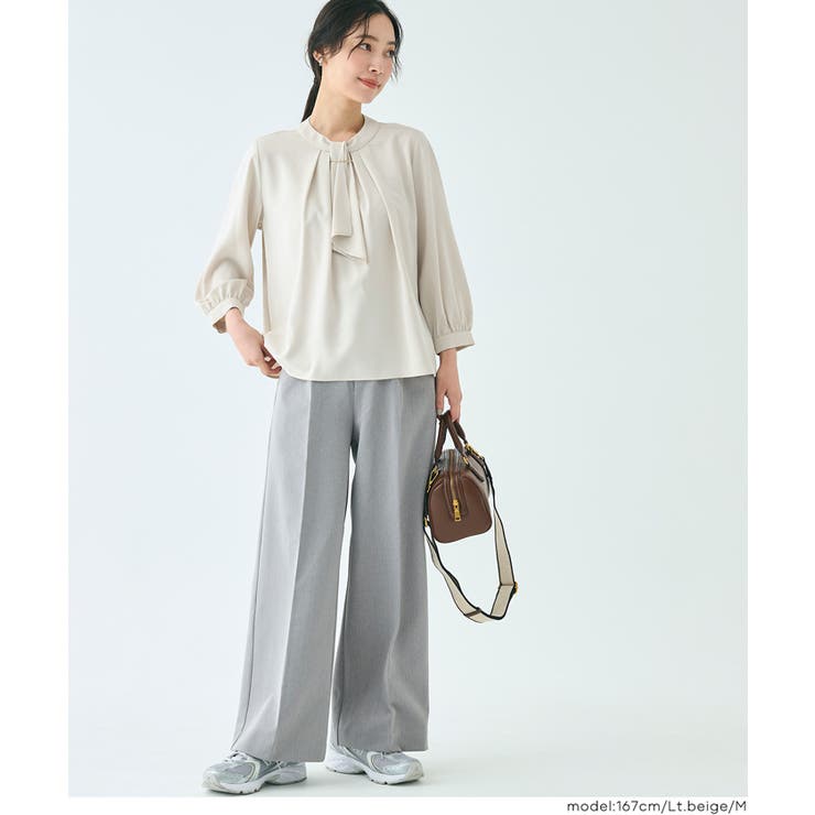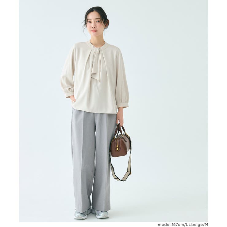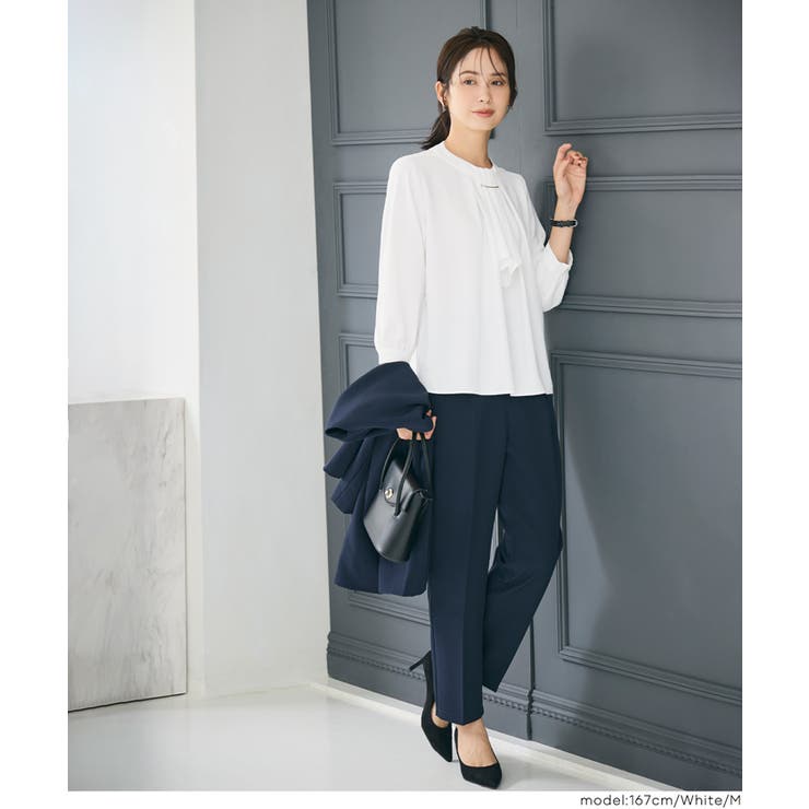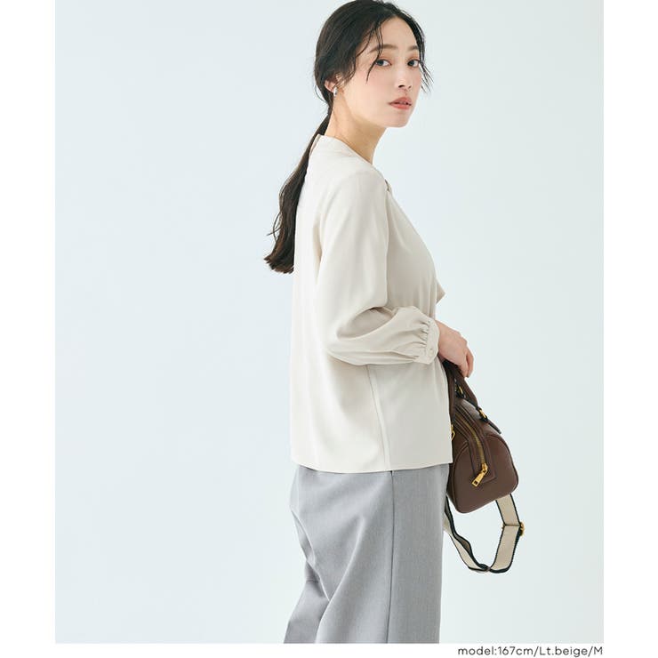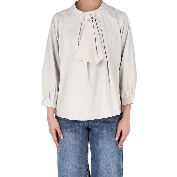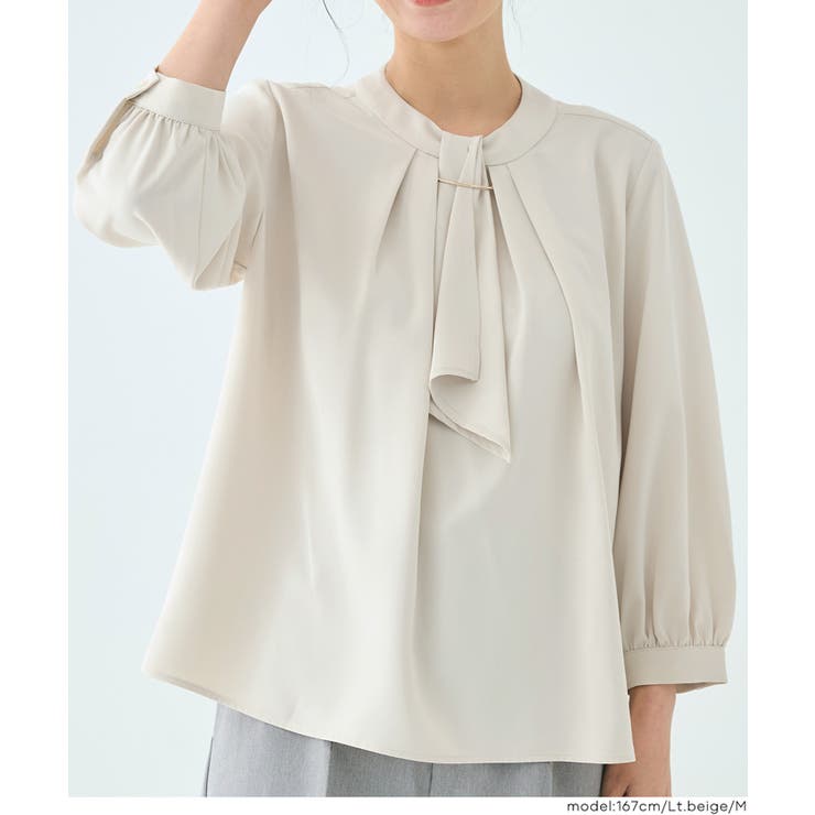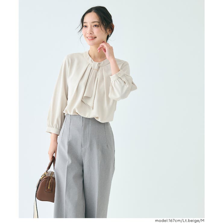 coca ボウタイ風アクセ付きブラウス トップス シャツ ブラウス 超目玉商品 [M] [L] [White] [Lt.beige]