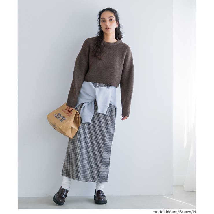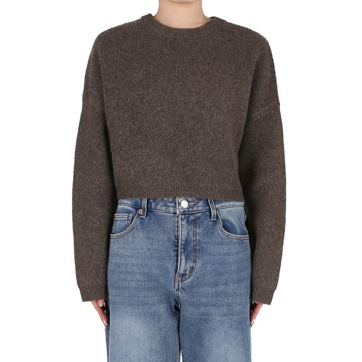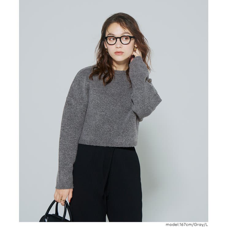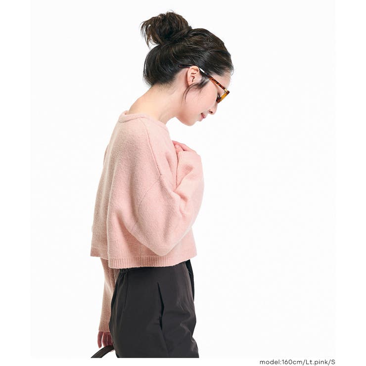 coca 縮絨ニットクロップド丈トップ レディースファッション 早い者勝ち [S] [M] [L] [Brown] [Gray] [Lt.Pink]