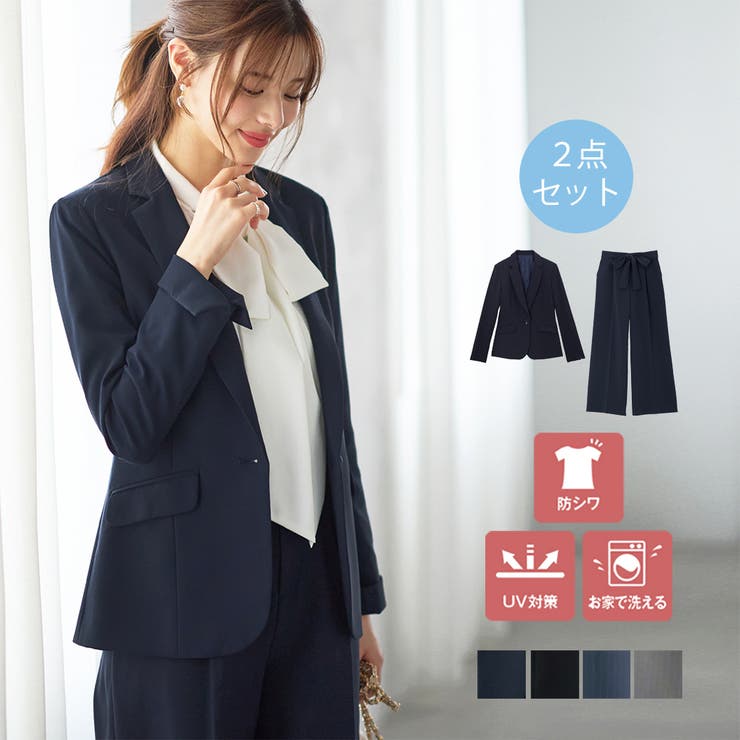 GeeRA 洗えるワイドパンツスーツセ レディースファッション 人気 5号(XXS) 7号(XS) 9号(S) 11号(M) 13号(L) 15号(XL) 17号(XXL) 19号(4L) 21号(5L) 23号(6L) ネイビー ブラック ネイビーストライプ グレーストライプ