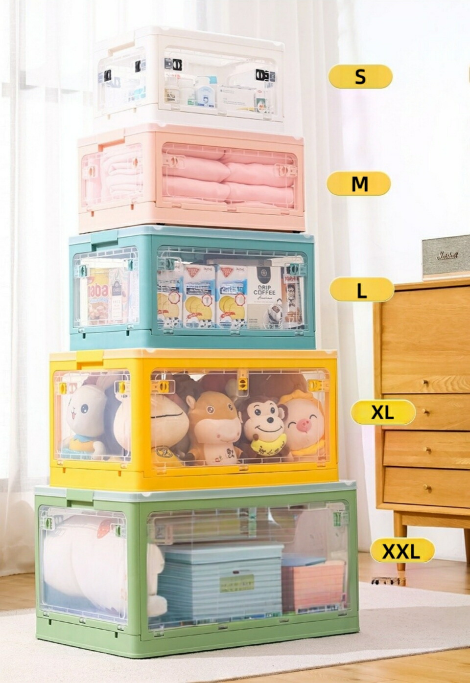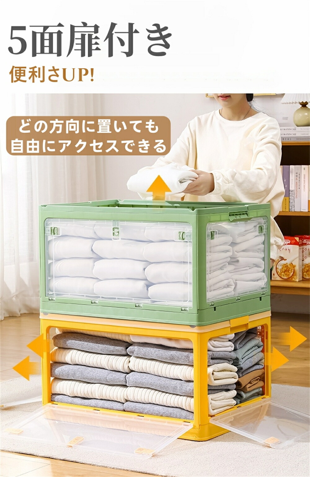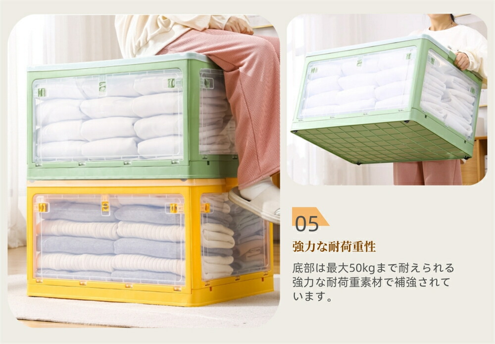 収納ボックス 5面開閉 1~3個組 蓋 S-28L(40.5*29*24cm) M-40.5L(47*35*24.5cm) L-56L(51.5*36.5*30.5cm) ホワイト ピンク グリーン イエロー ブルー