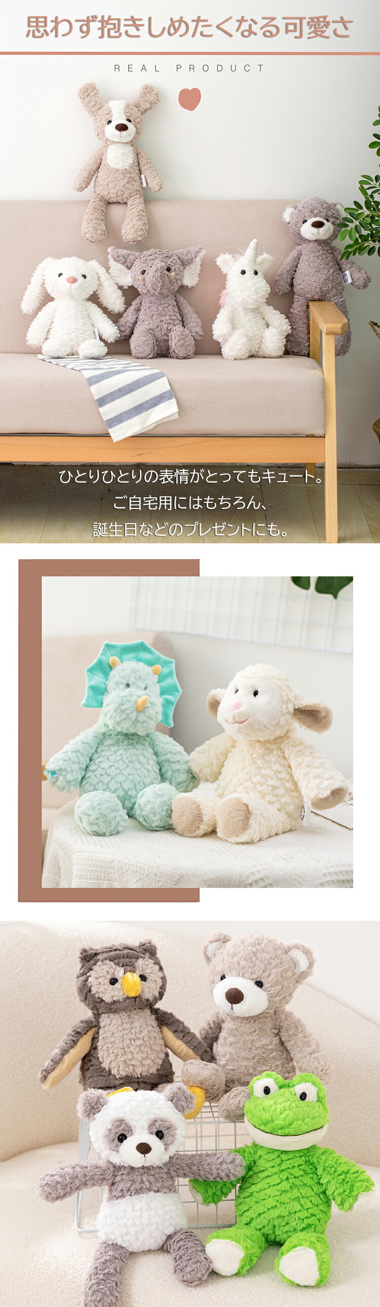 ぬいぐるみ ファーストトイ ふわふわ おもちゃ ゲーム 新作 くま パンダ ゾウ 恐竜 カエル 乳牛 ヒツジ フクロウ 犬 ピンクうさぎ ユニコーン 白うさぎ
