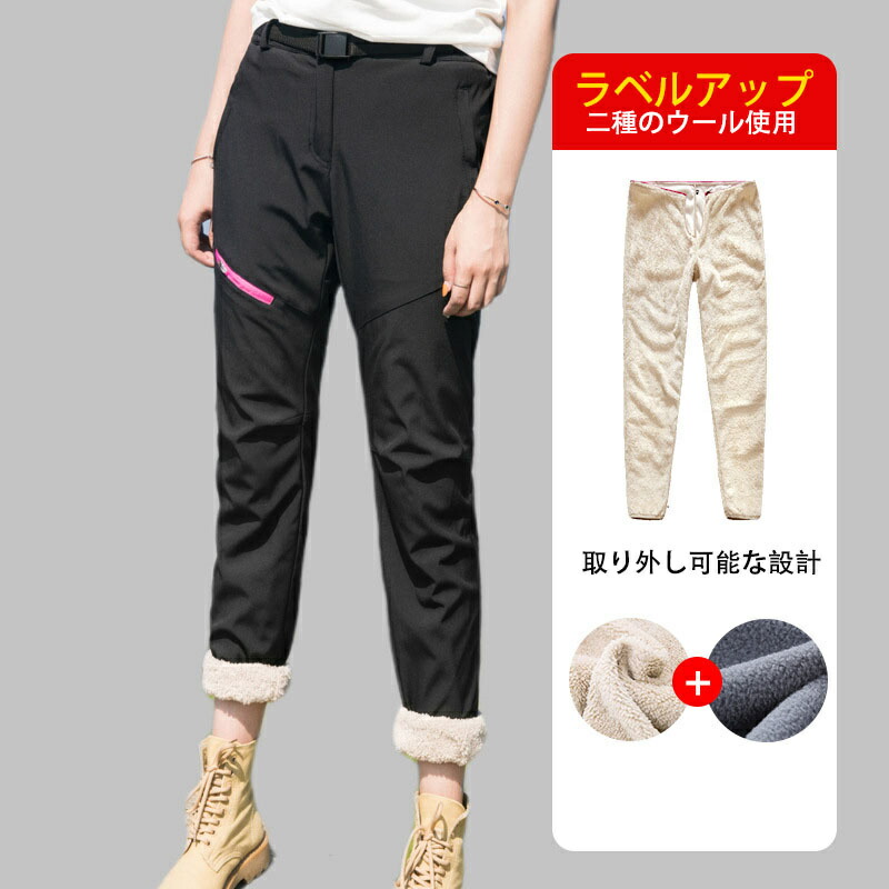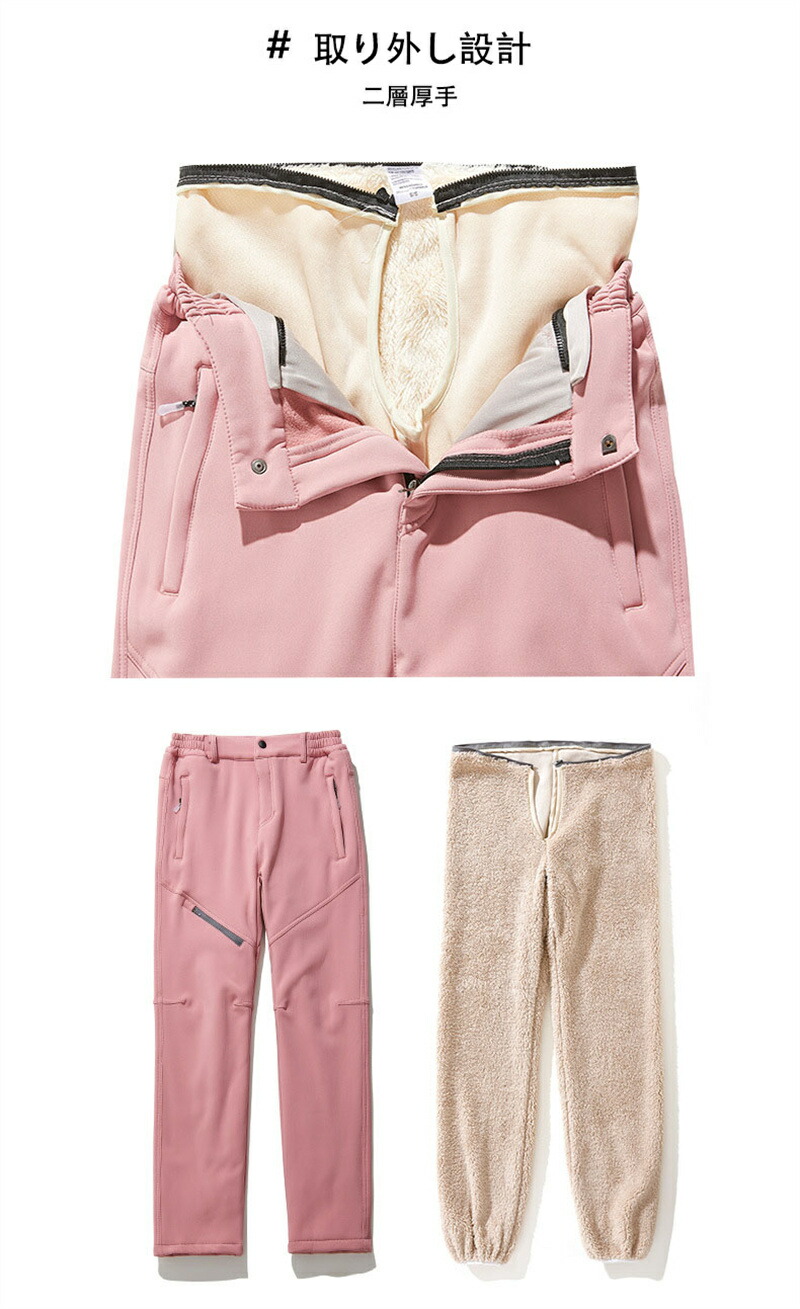 二層パンツ 登山パンツ 裏起毛 レディース メンズ アウトドアパンツ フリース 多機能 内部で取り外し可能 長ズボン 撥水加工 防汚 防水 防風ズボン ソフトシェルパンツ 暖かい ストレ ロングパンツ