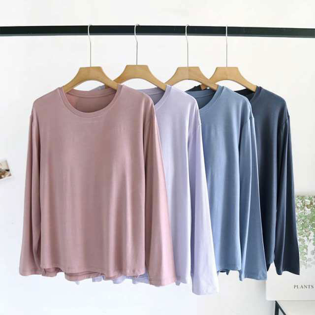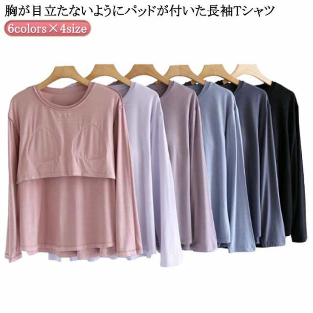 パット付長袖Tシャツ ラウンドネック レディースファッション 特集 ピンク ブルー ダークグレー ダークパープル ライトパープル ブラック M L XL 2XL