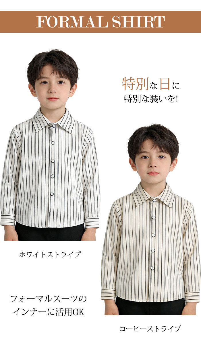 男の子 ワイシャツ キッズ カッターシ キッズ スーツ カジュアルセットアップ スーツ 豊富 コーヒーストライプ ホワイトストライプ 90cm 100cm 110cm 120cm 130cm 140cm 150cm 160cm