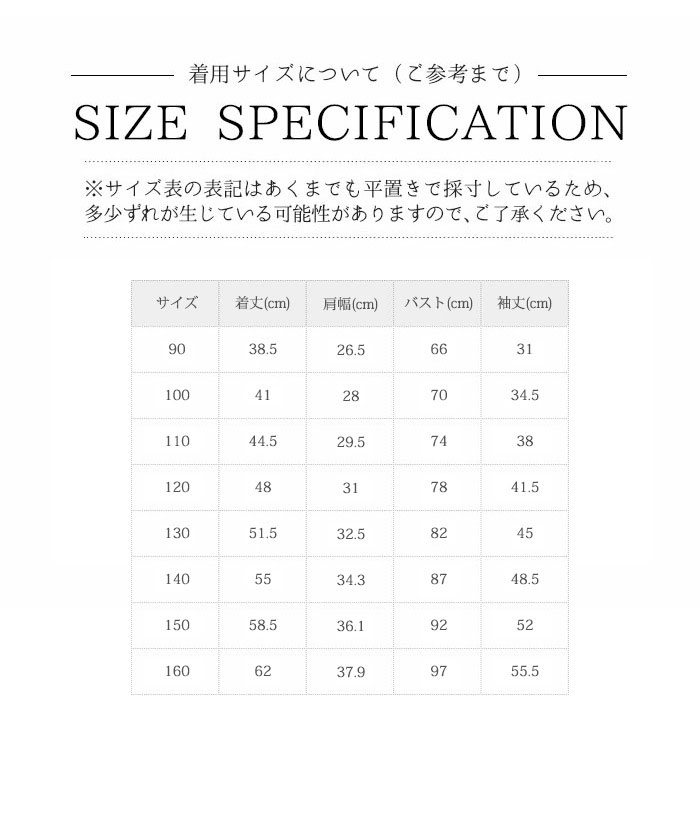 サイズの測り方はスタッフ間で統一しておりますが、若干の誤差(約2~3cm前後)が生じる場合がございます。