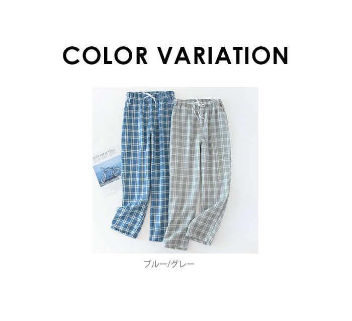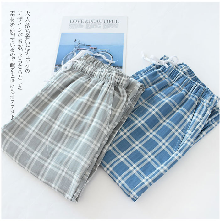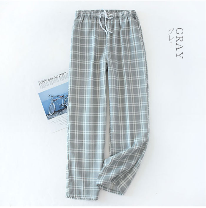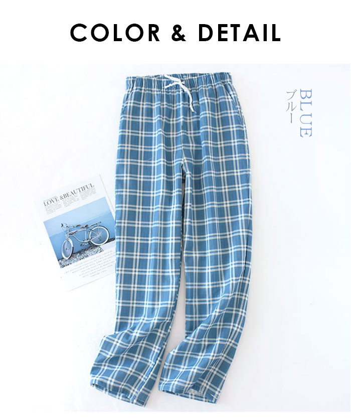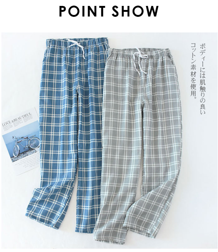 パジャマ ズボンメンズ チェック ルームウェア パンツ コットン 男性 ルームパンツ ナイトウェア ボトムス 湯上りパンツ 薄手 部屋着 ルームウエア 寝ズボン 肌に優しい 通気 二重ガーゼ