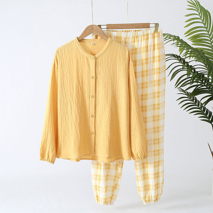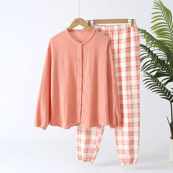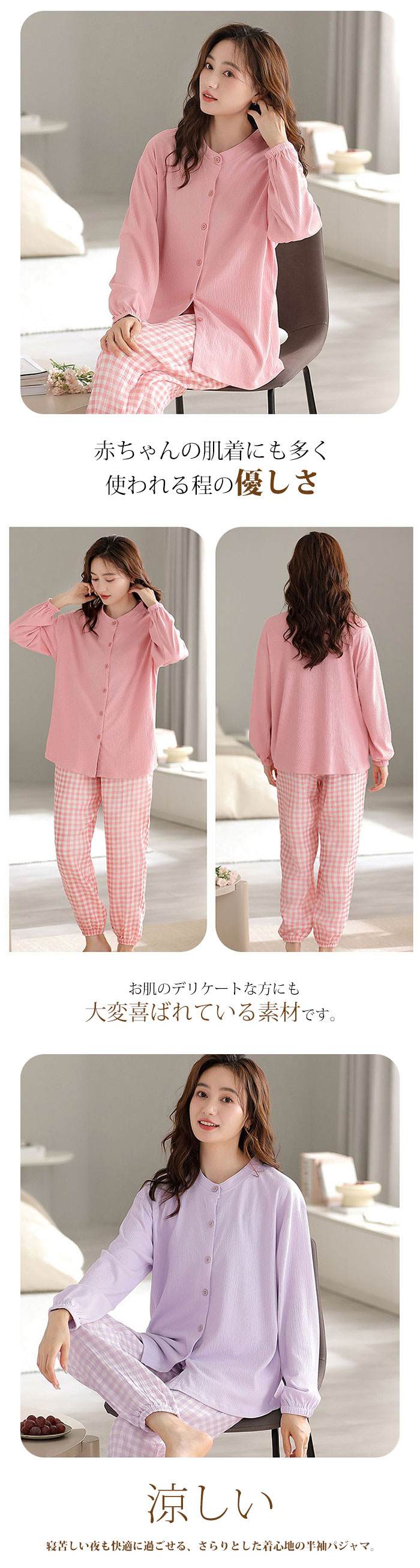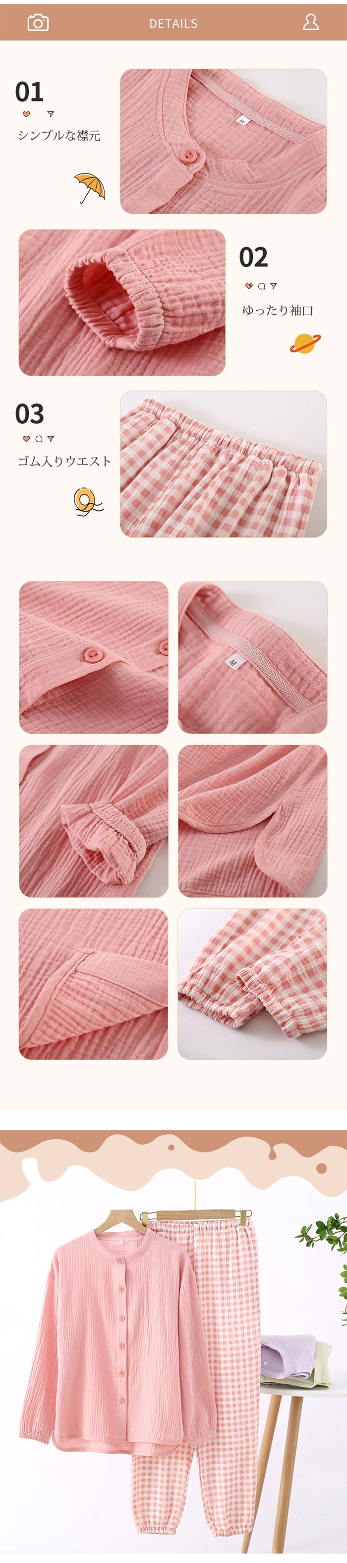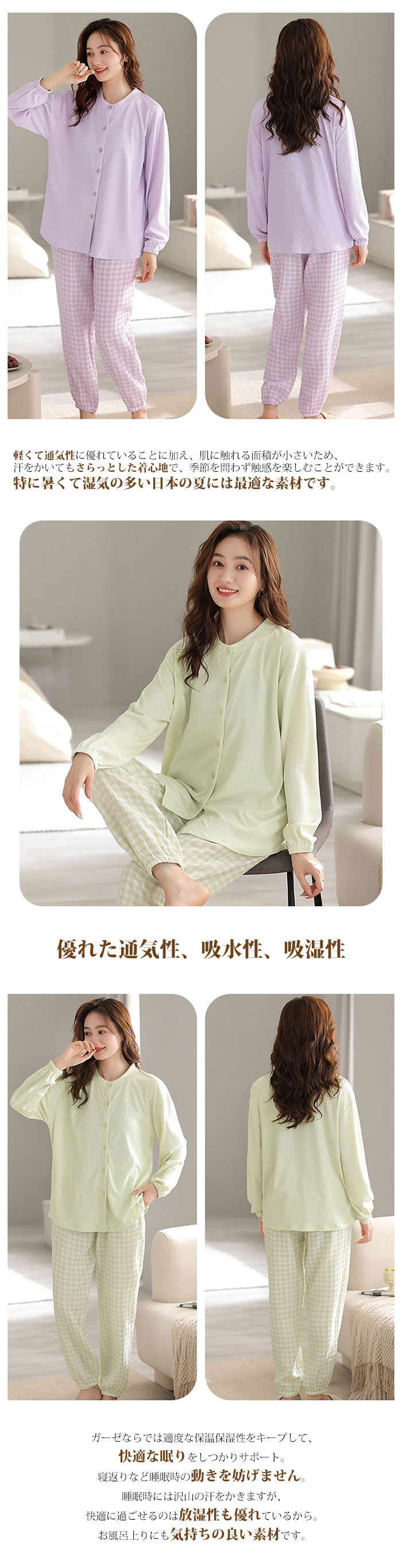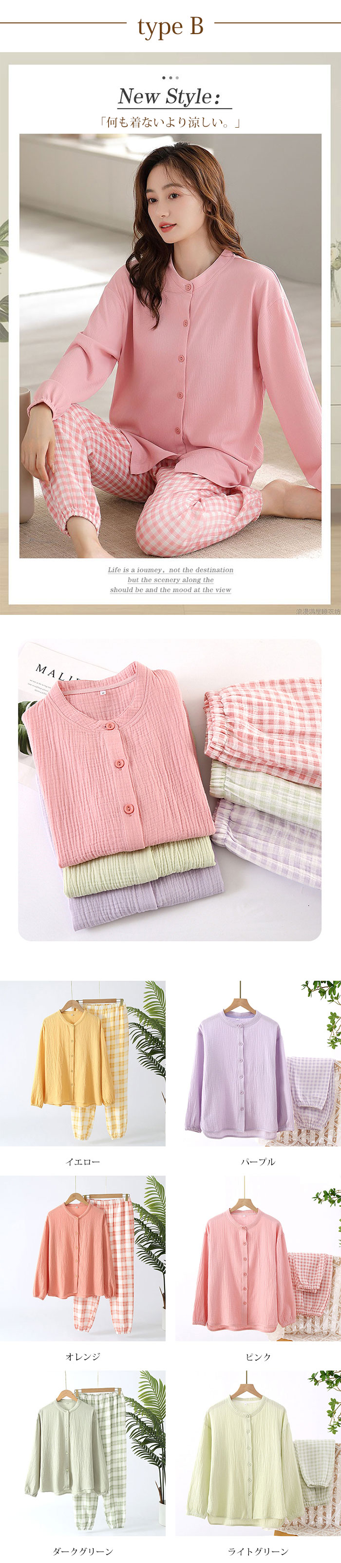 ガーゼ パジャマ レディース 長袖 ダ レディース ナイトウェア ルームウェア パジャマ 続々登場 A B C ピンク グレー ブルー 男グレー 男ネイビー ライトグリーン パープル オレンジ イエロー ダークグリーン グリーン