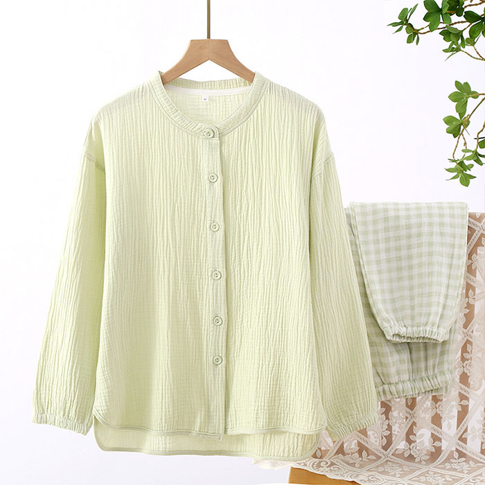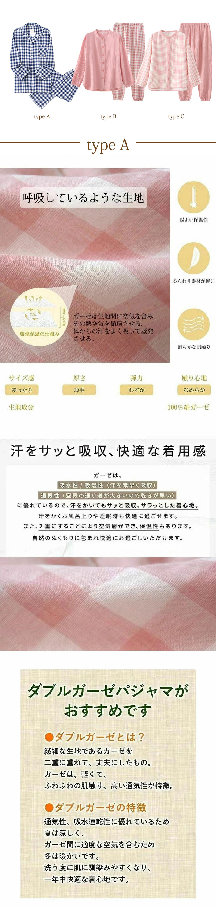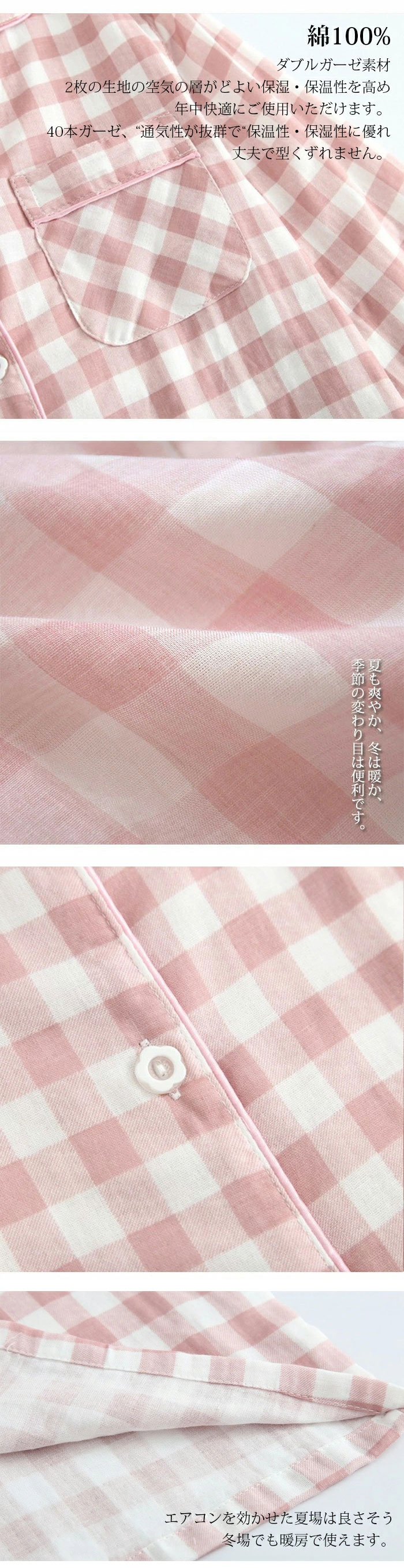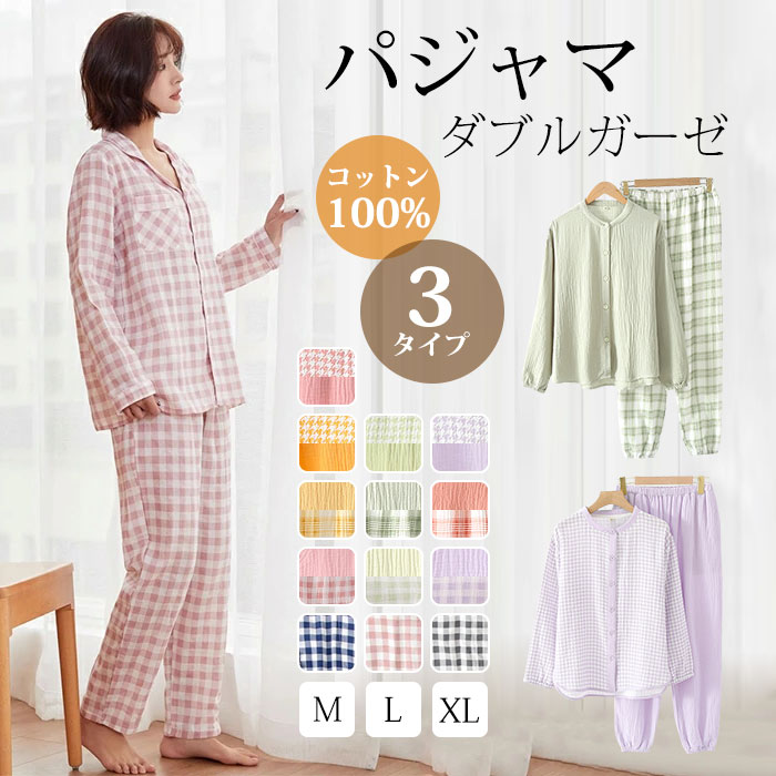 ガーゼ パジャマ レディース 長袖 ダブル ルームウェア 綿100% 前開き 春 セットアップ 二重ガーゼ 部屋着 襟付き 上下セット 寝間着 即乾 コットン ゆ 柔らかい
