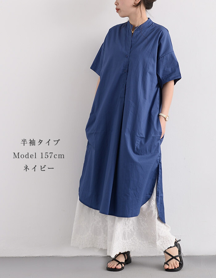 シャツワンピース ロングシャツワンピー 長袖 【半袖追加】 黒 白 グレー ベージュ キャメル 水色 グリーン 紺色 (New)ブラック ストライプ (New)ブルー ストライプ