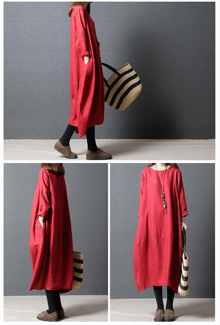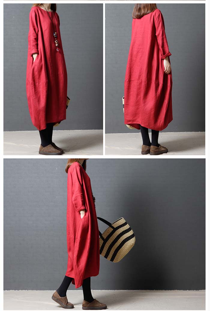 ワンピース 春 長袖 レディース ロン レディースファッション 続々登場 赤 黒 緑 M L XL XXL